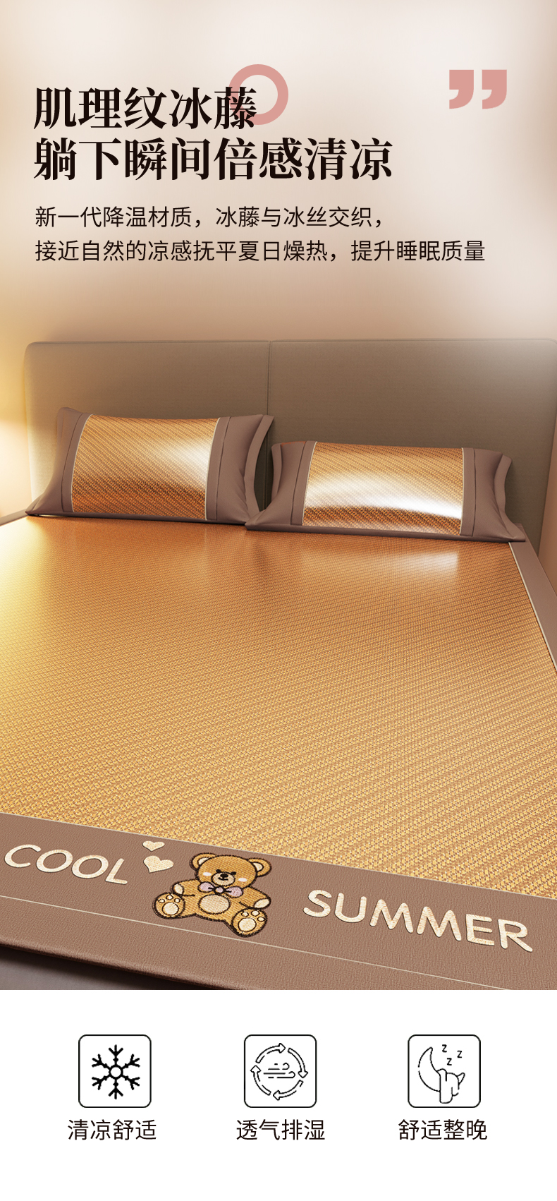 (总)阿牛席业 2025新款冰藤凉席系列冰藤完美-小熊席,完美生活-咖色,小熊条席-灰色,小熊条席-金色,小熊条席-咖色,小熊-灰床笠,小熊-金床笠,小熊-咖床笠