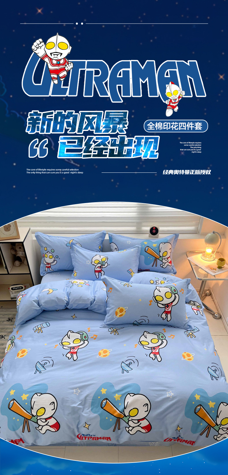 当前位置: 91家纺网 > 商品网购 > 床品套件 > 四件套 > 全棉普通四件套 > 蘭菲家纺 2025新款经典奥特曼小版全棉印花四件套 科学家