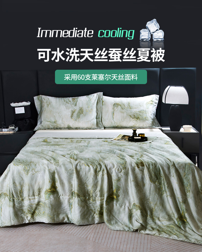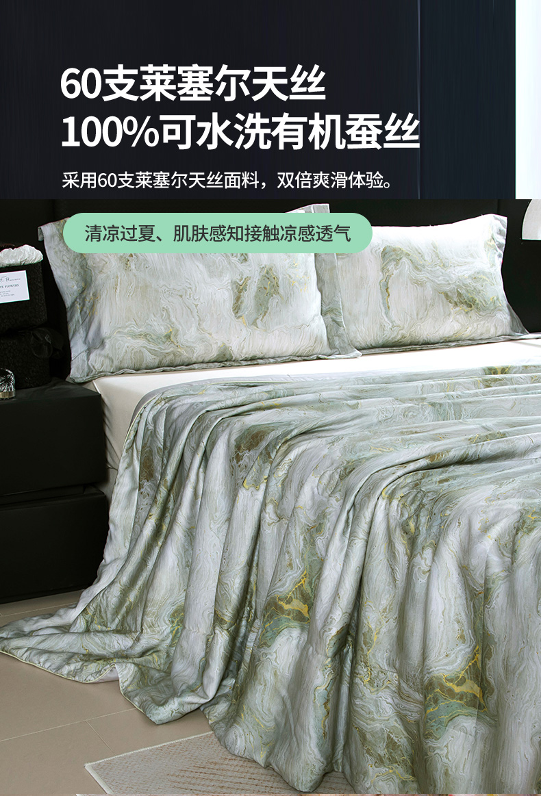 商品名称:鑫田家纺 60s莱赛尔天丝夏被100%蚕丝被夏凉被空调被可水洗蚕丝被 雅典娜-灰绿