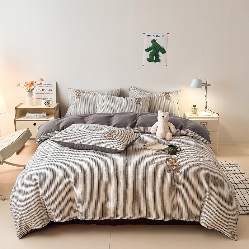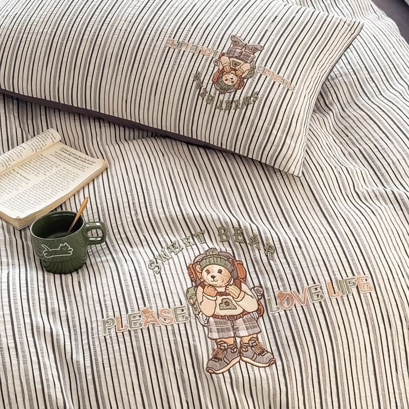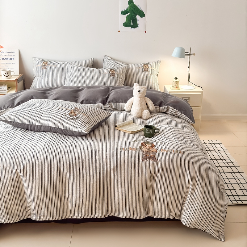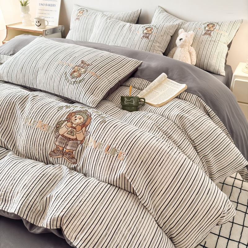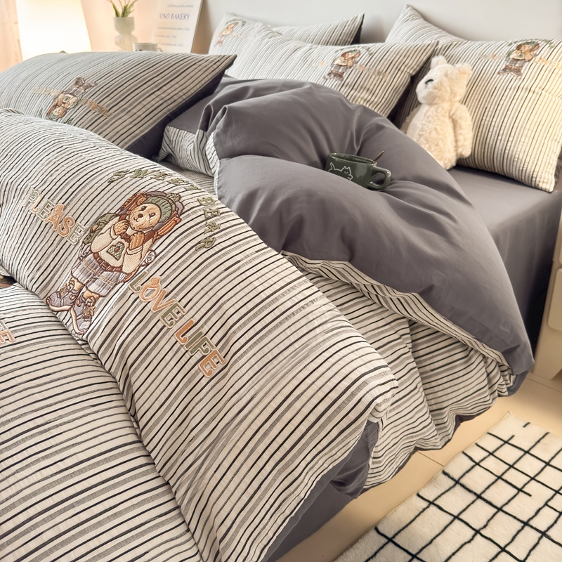 商品名称:水云缦 2025新款全棉三层纱色织大提花绣花四件套-维尼款 维尼-高级灰
