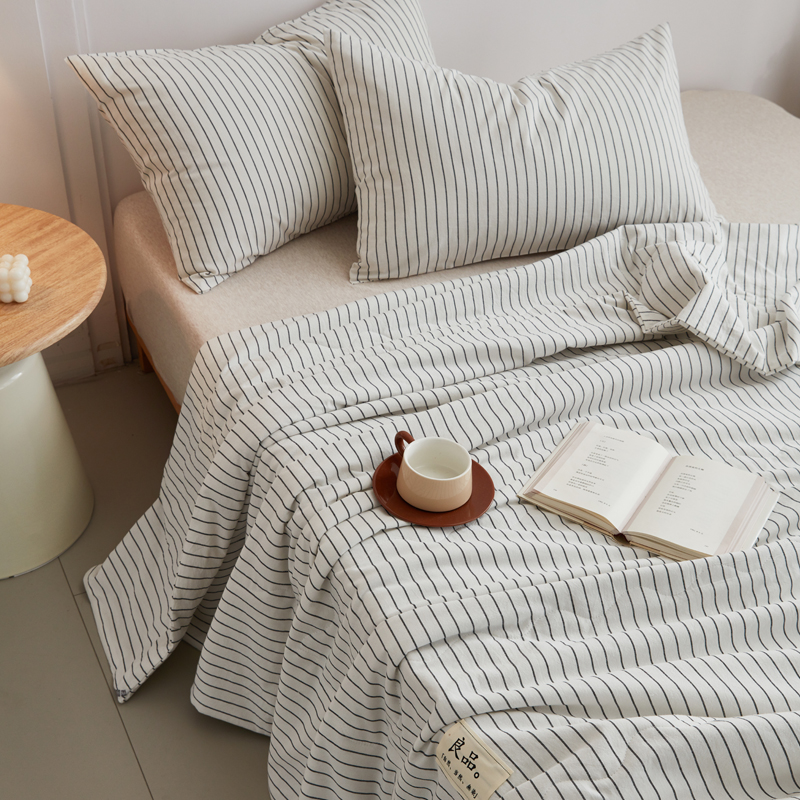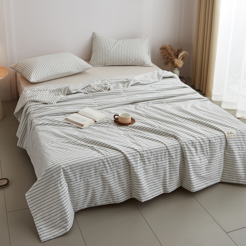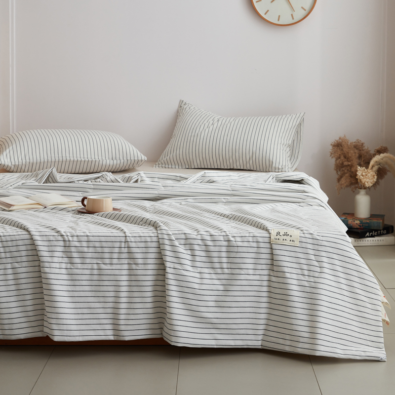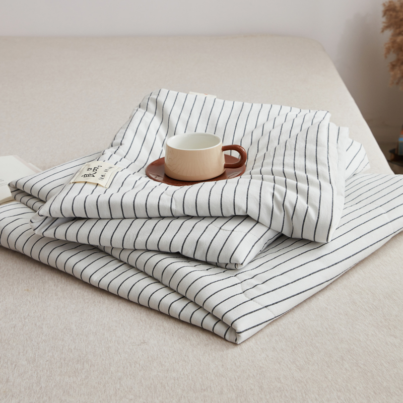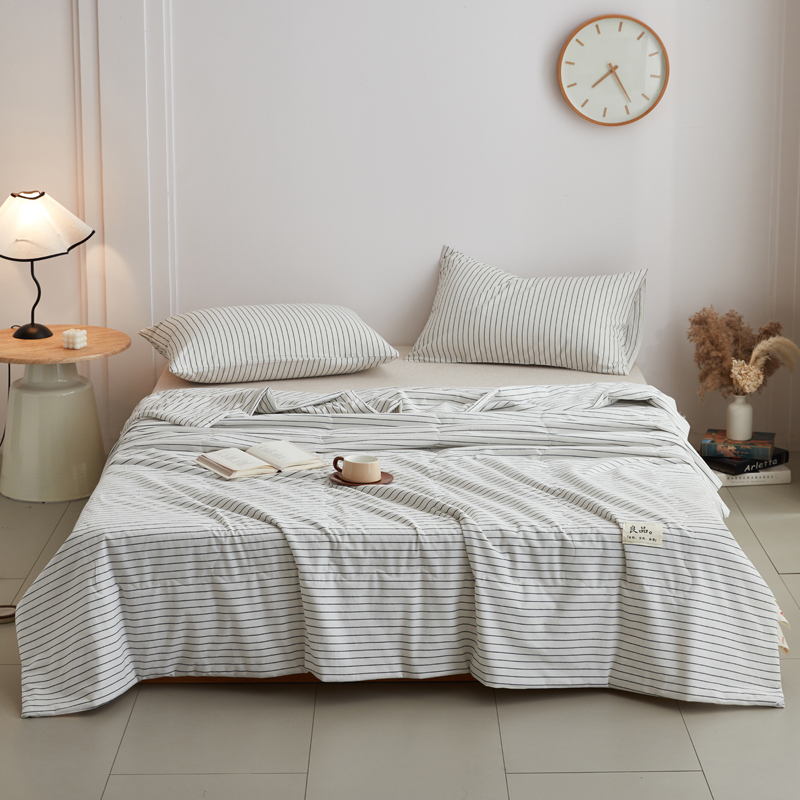 尊妙被业 2025新款全棉色织水洗棉夏被 白细条