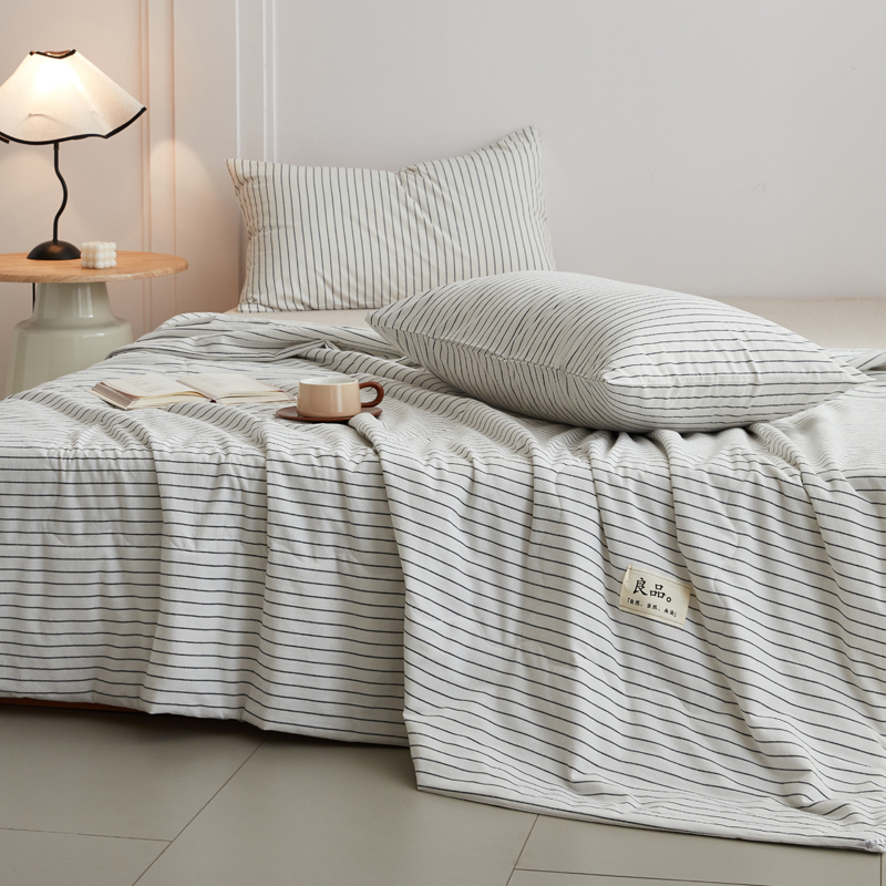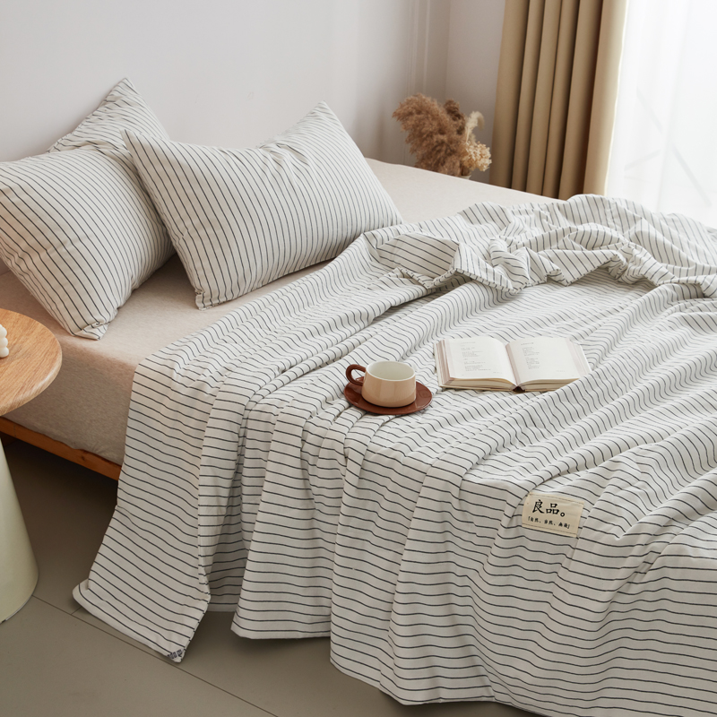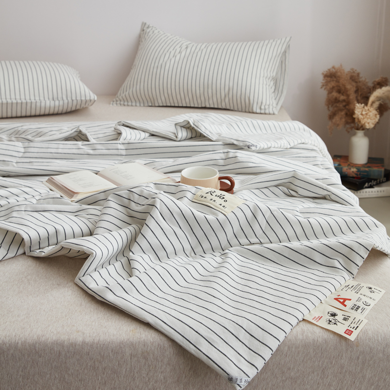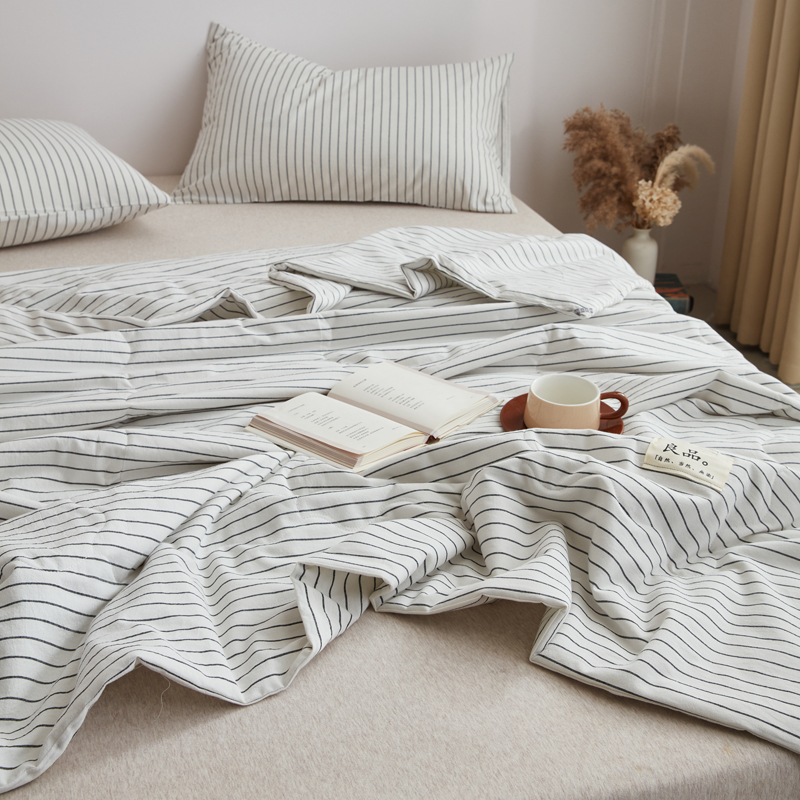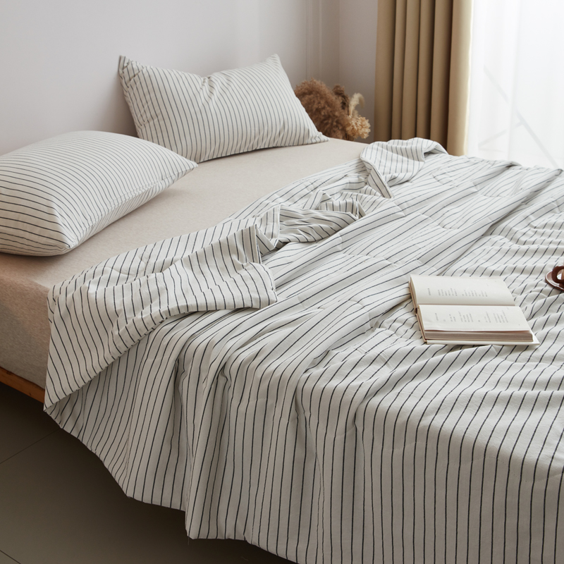 尊妙被业 2025新款全棉色织水洗棉夏被 白细条