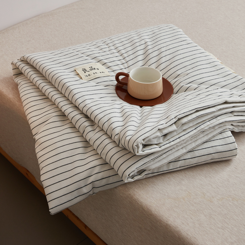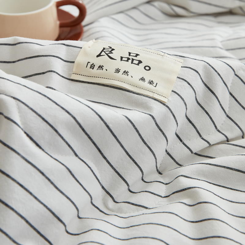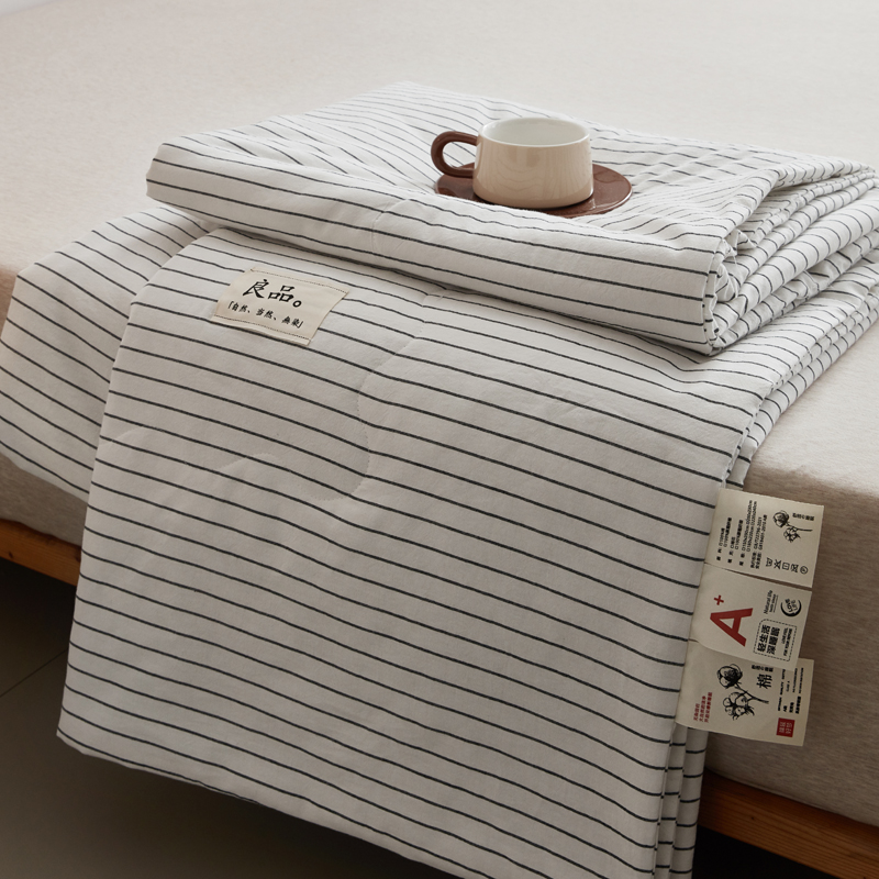 • 91家纺网 家纺一手货源 找家纺 尊妙被业 2025新款全棉色织水洗棉夏被 白细条