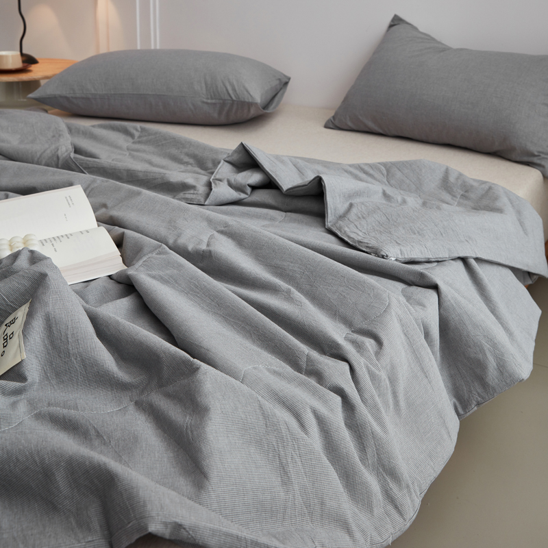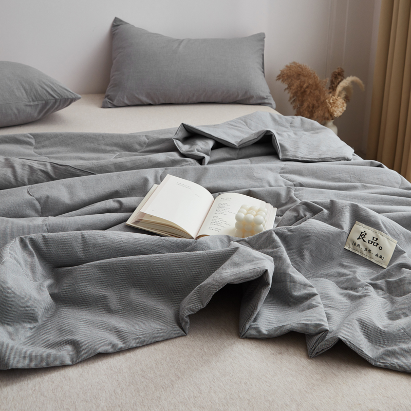 • 91家纺网 家纺一手货源 找家纺 尊妙被业 2025新款全棉色织水洗棉夏被 千鸟格-灰