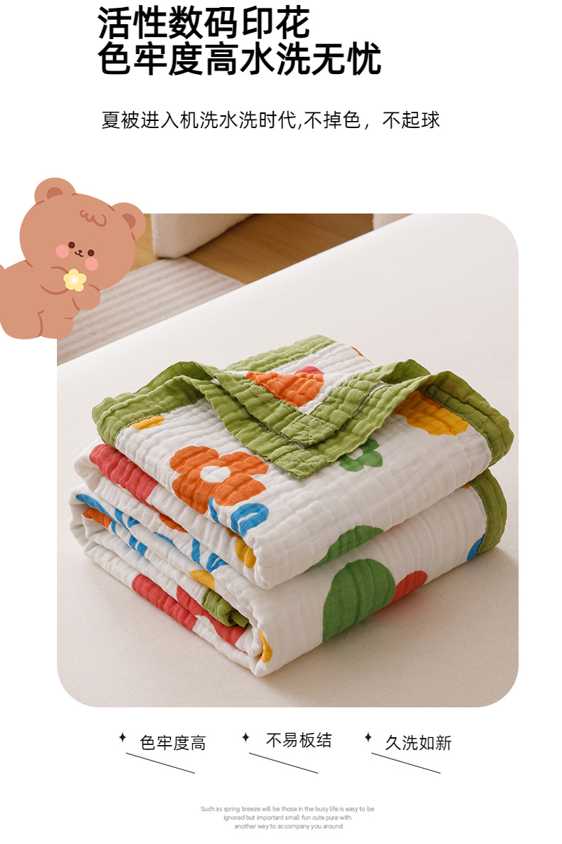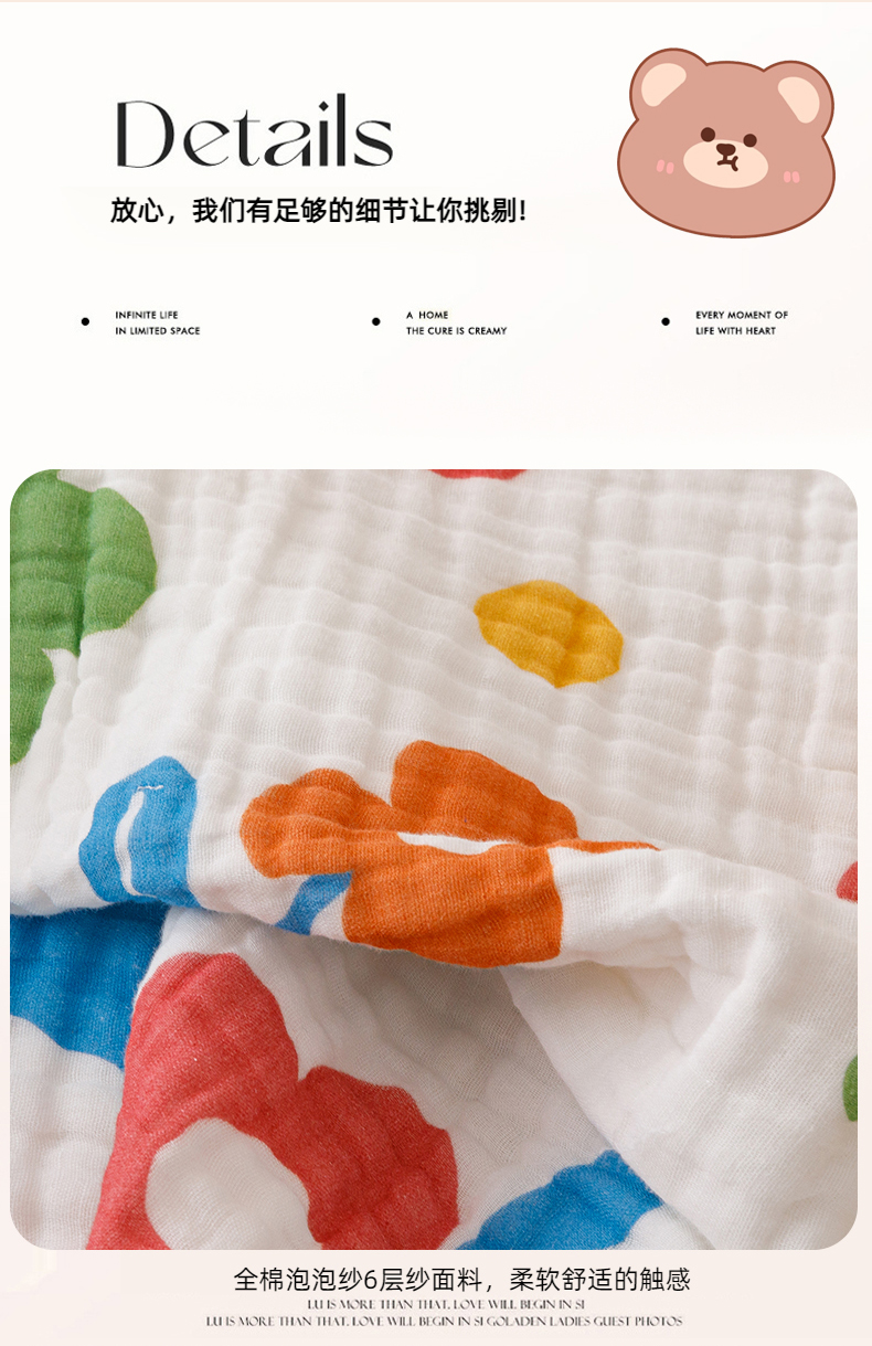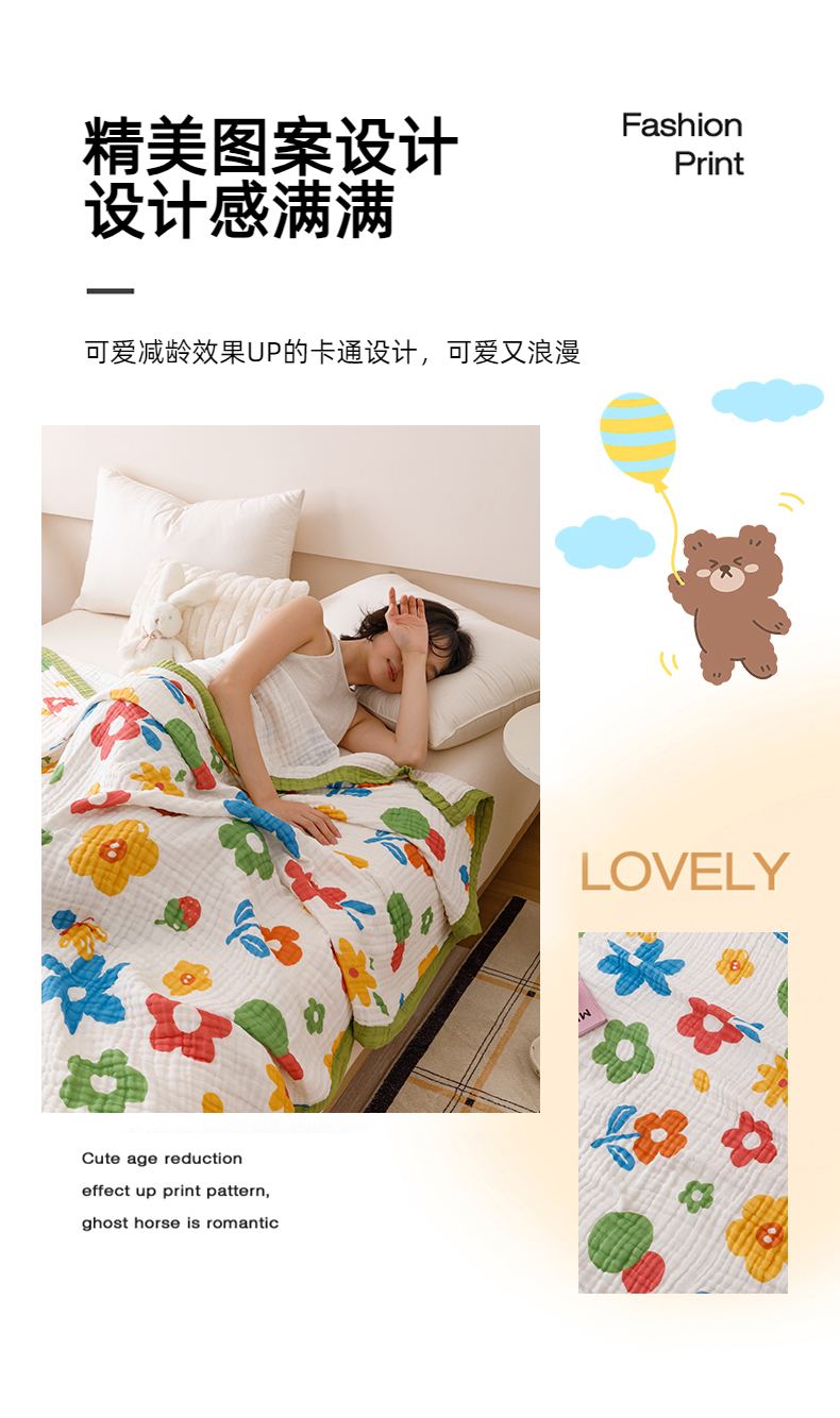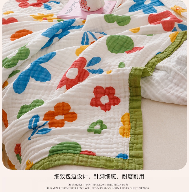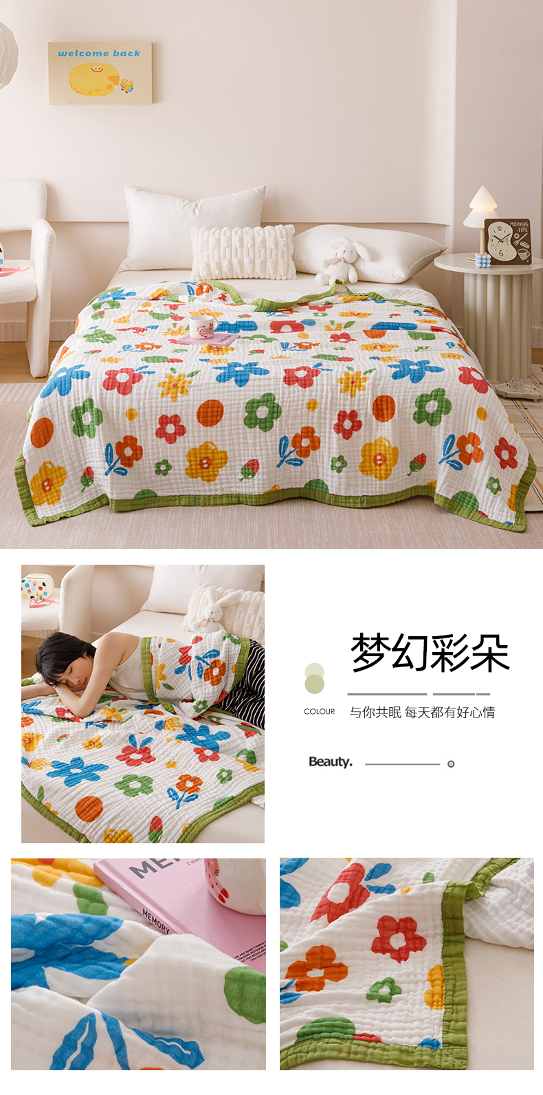 商品名称:悦然毛巾被 2025新款全棉泡泡纱6层纱儿童夏被 梦幻彩朵