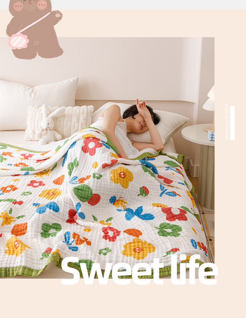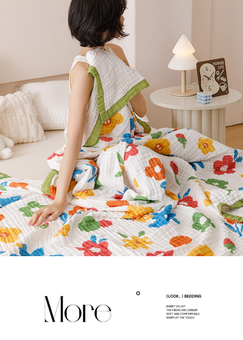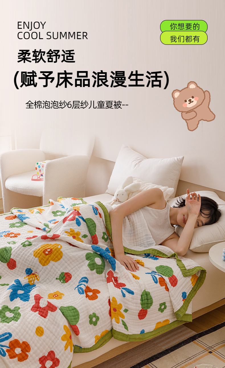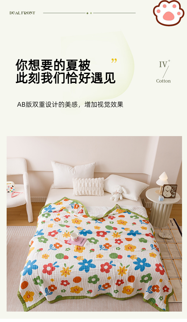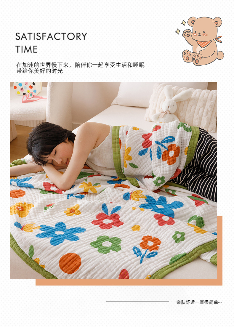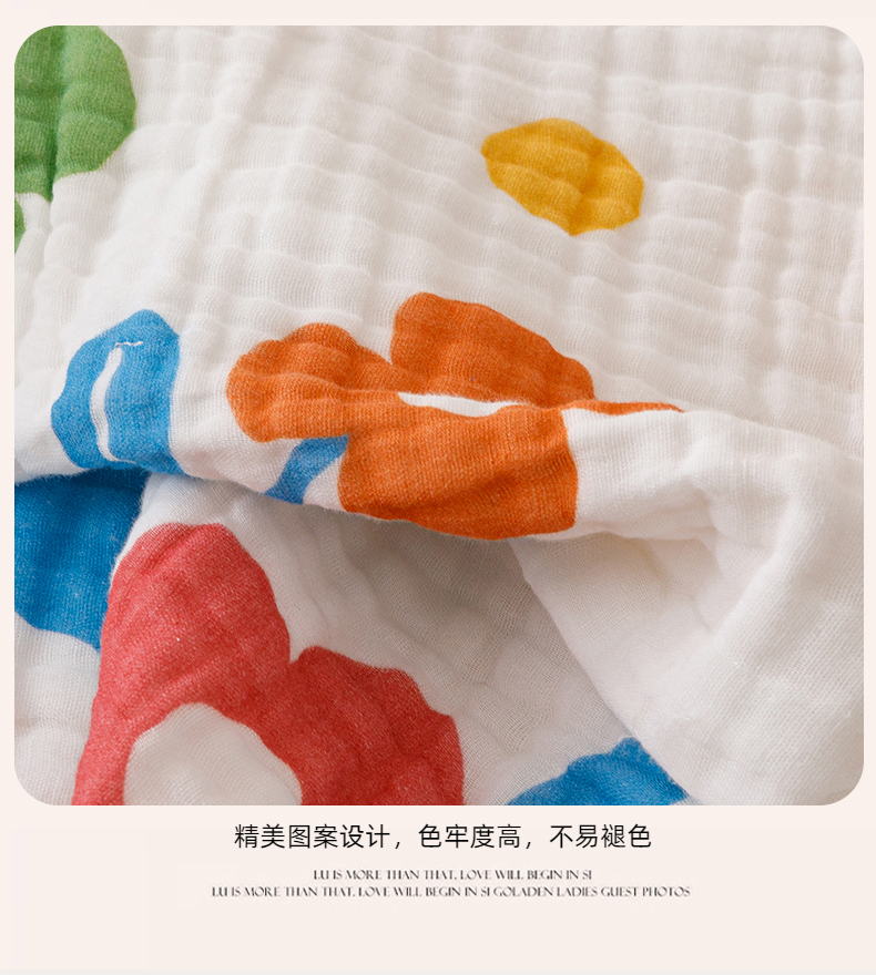 商品名称:悦然毛巾被 2025新款全棉泡泡纱6层纱儿童夏被 梦幻彩朵