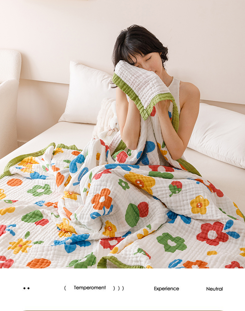 悦然毛巾被 2025新款全棉泡泡纱6层纱儿童夏被 梦幻彩朵