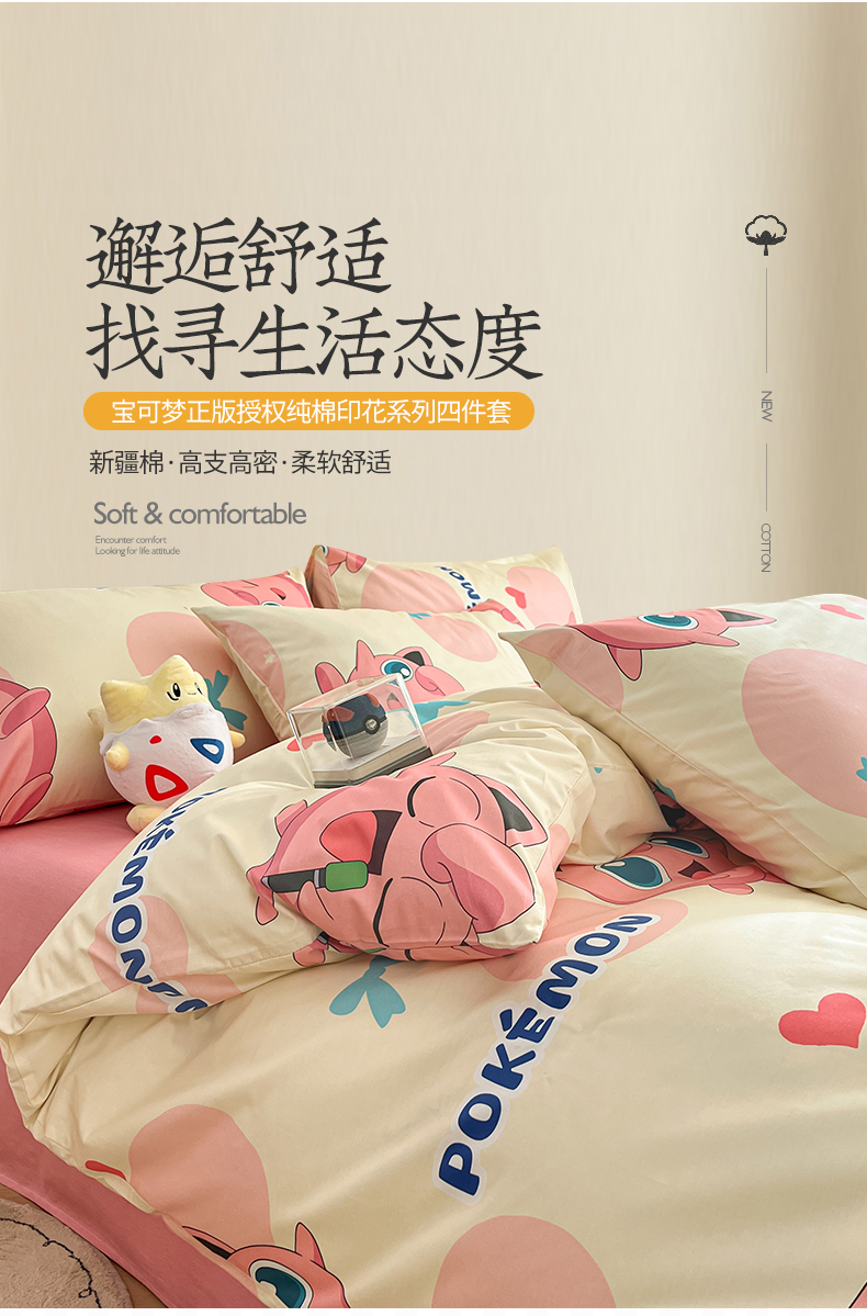当前位置: 91家纺网 > 商品网购 > 床品套件 > 四件套 > 全棉普通四件套 > 金爱家 2025新款宝可梦正版授权皮卡丘纯棉印花系列四件套 棉宝可梦-蝴蝶结胖丁