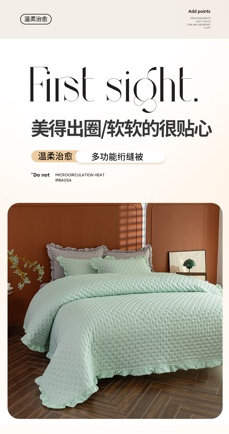 恩和家纺 2025新款荷叶边款多功能绗缝被床盖-风格二 飞边白色