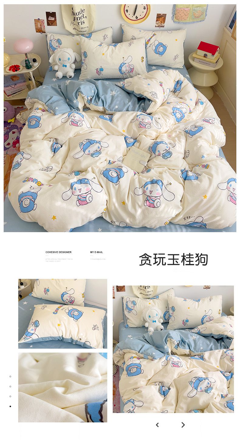 当前位置: 91家纺网 > 商品网购 > 床品套件 > 四件套 > 水洗棉四件套 > 贝扬思家纺 2025新款水洗棉三丽鸥简约系列四件套-大床图 淘气帕恰狗
