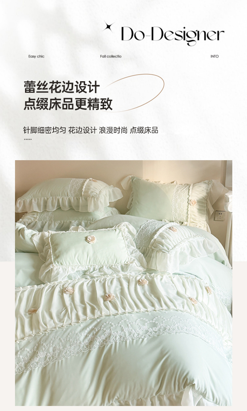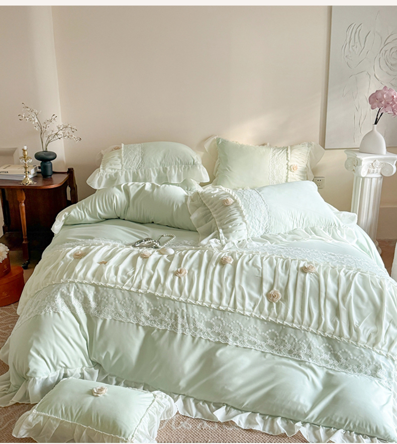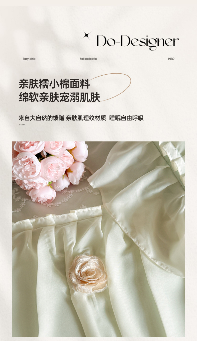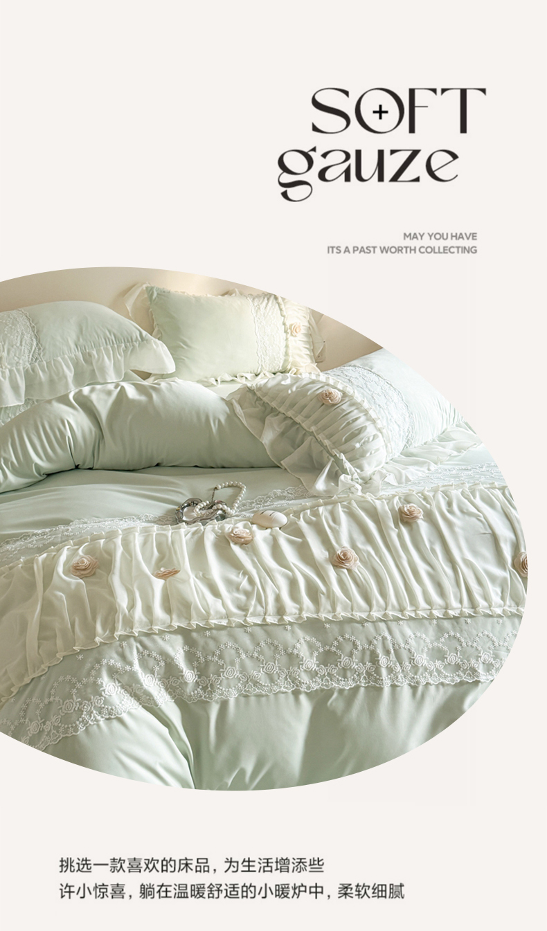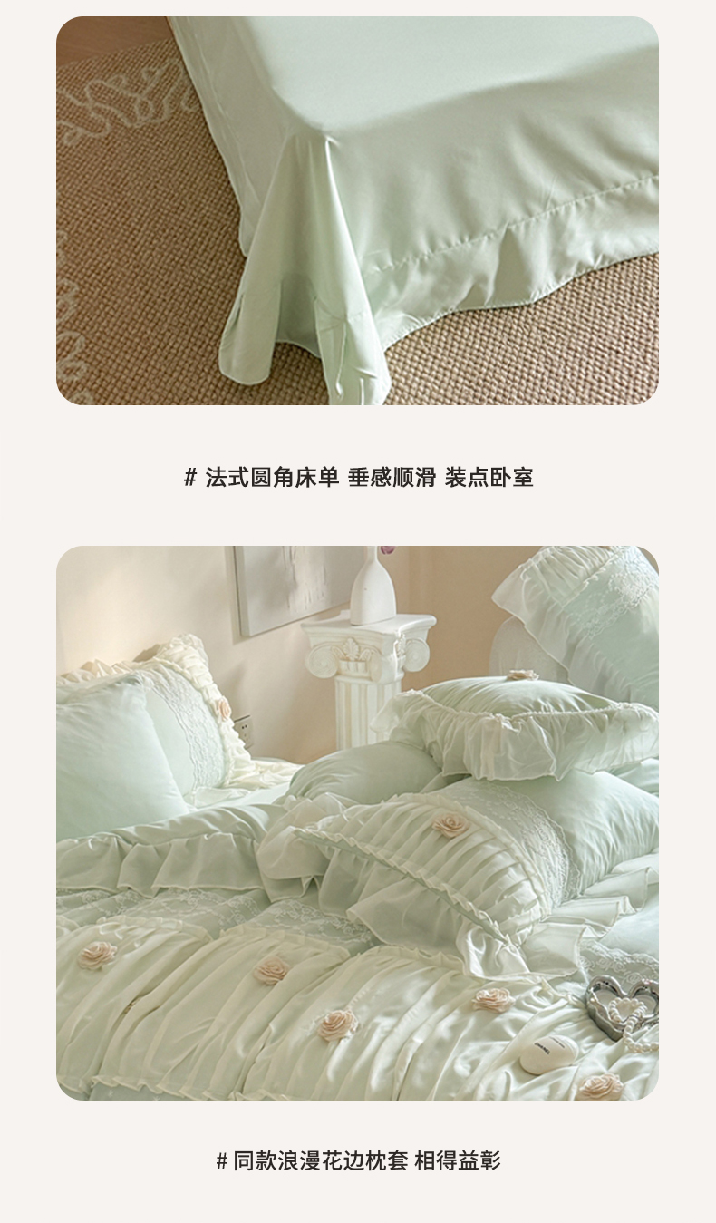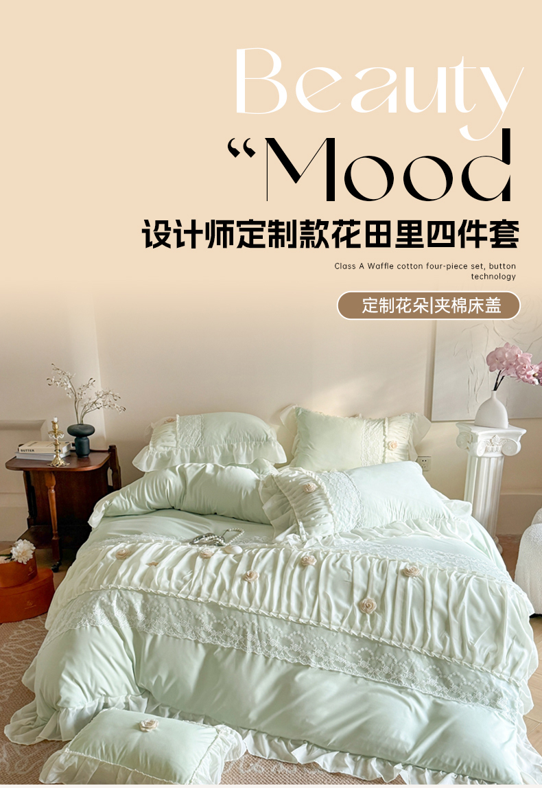 当前位置: 91家纺网 > 商品网购 > 床品套件 > 四件套 > 其它四件套 > 吾欢心2025新款花田里糯小棉立体定制花朵定制蕾丝花边四件套 花田里绿