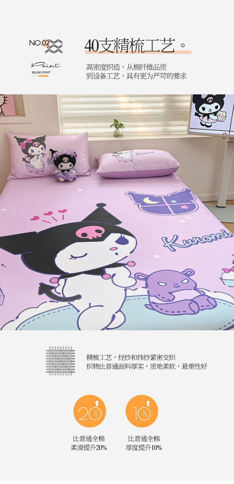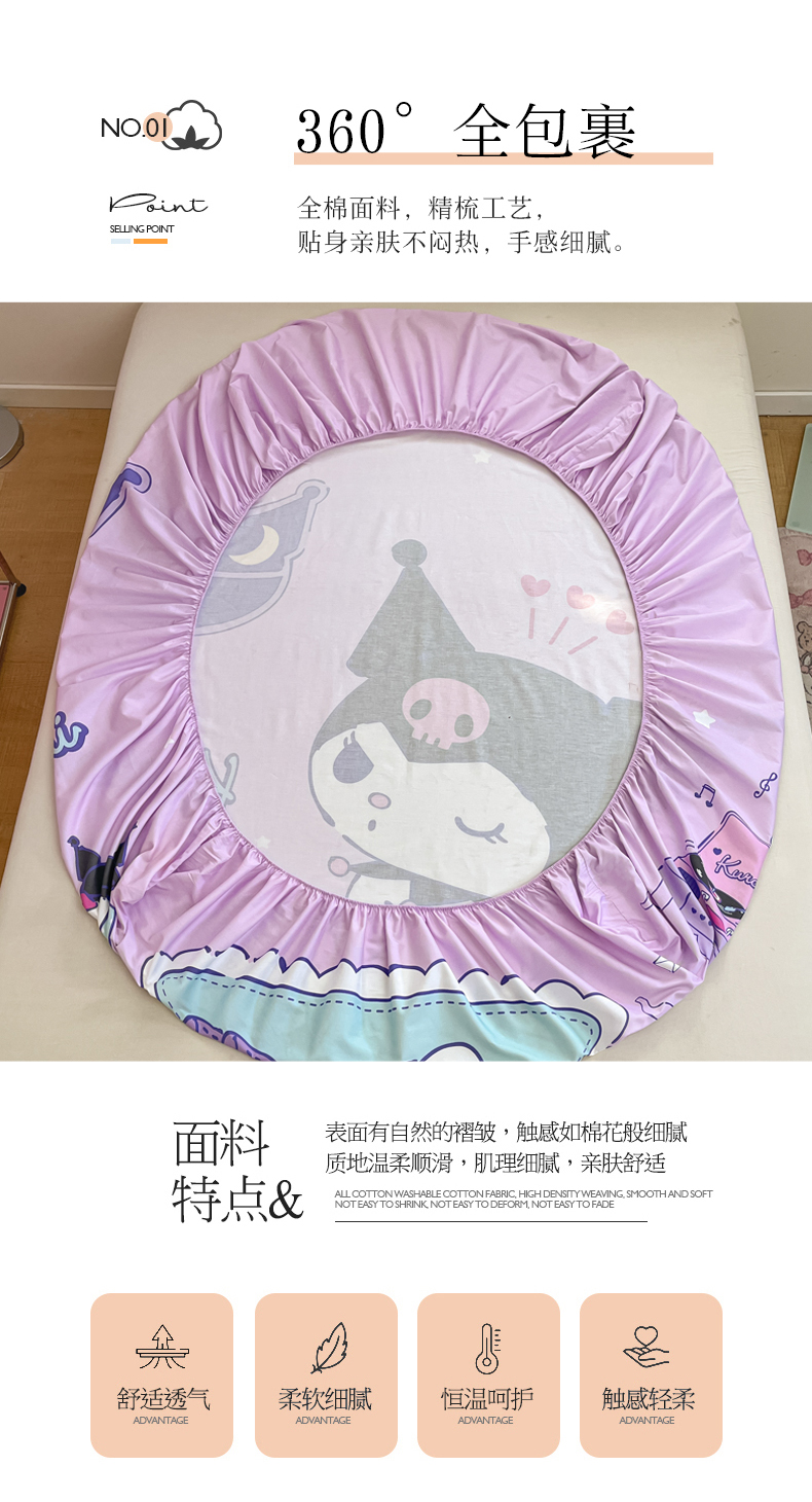 商品名称:金爱家 2025新款三丽欧全棉大版单品--床笠 棉单品-音乐库洛米