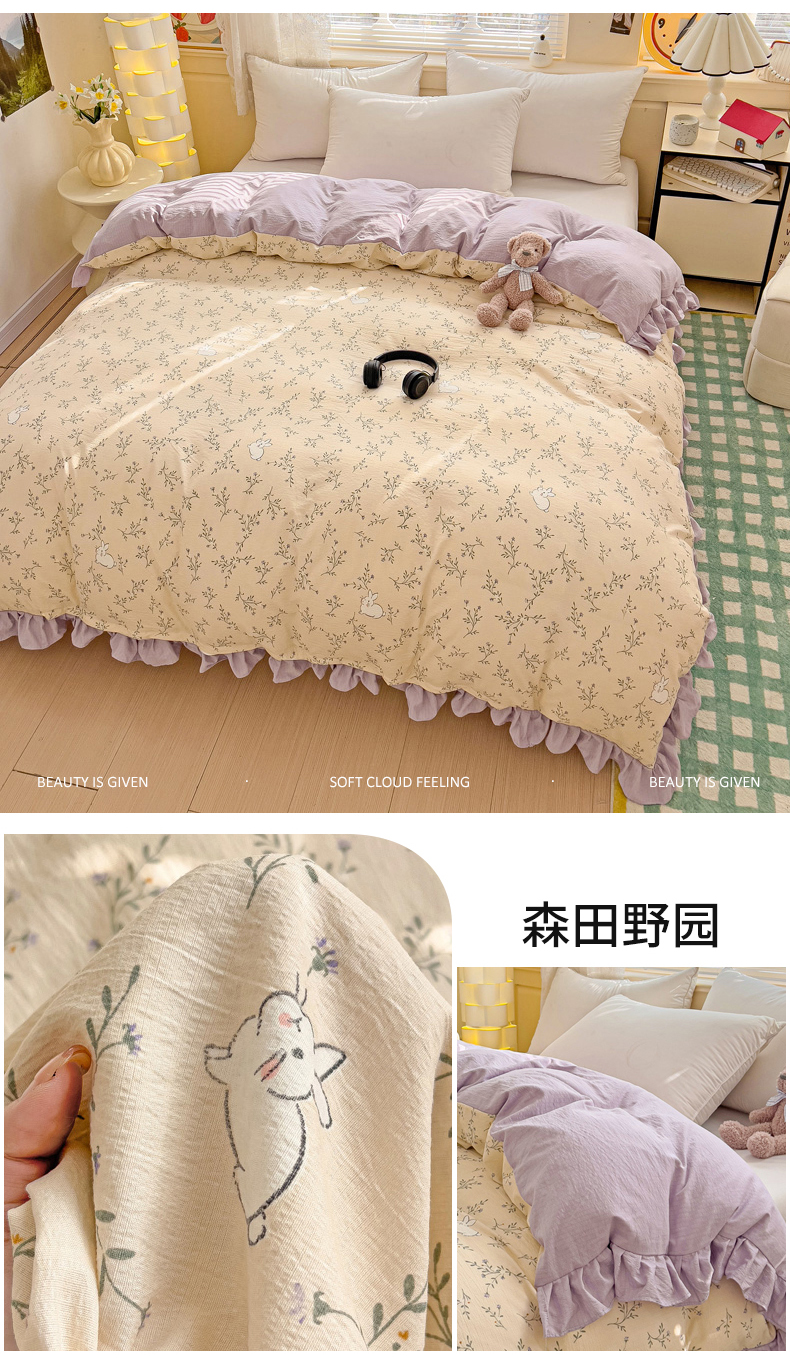 (总)纽缦家纺 2024水洗双层纱加厚加棉韩版床盖,半眠日记,南岛小镇,嗨皮兔,夹心果冻,小兔堡,小南瓜,小橘子,小熊猫,小熊院长,小绿鸭,小黑球,心动兔兔,捉迷藏,撞进晚风,日记小姐,旧岛望海,曼塔玫瑰,桃你喜欢,甜茶日记,甜酥少女,童话小熊,素颜捧花,莓天开心,蓝小鸭,蓝海玫瑰,遇见-米,遇见-紫,香草薄荷