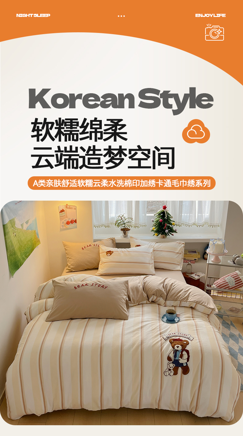 当前位置: 91家纺网 > 商品网购 > 床品套件 > 四件套 > 水洗棉四件套 > 桃心家居 2025新款A类亲肤舒适软糯云柔水洗棉印加绣卡通毛巾绣水洗棉系列 云柔水洗棉-印加绣英伦小熊
