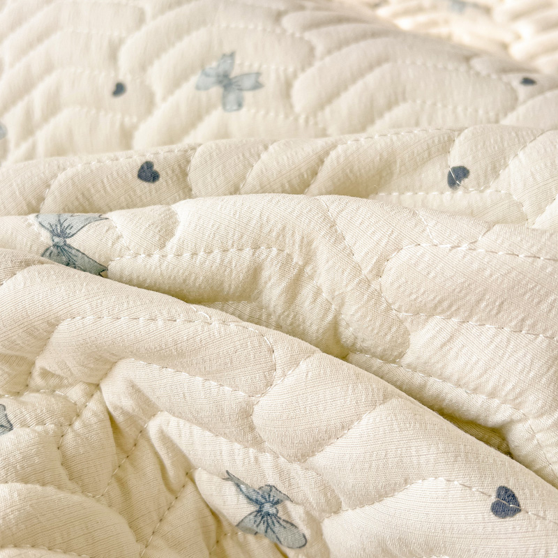 纽缦家纺 2025云感提花双层纱加厚夹棉绗缝床盖 相思蓝