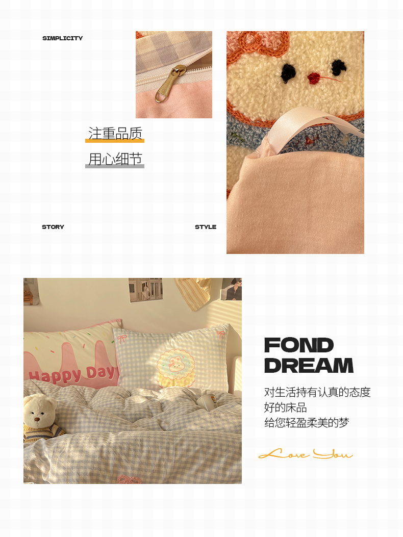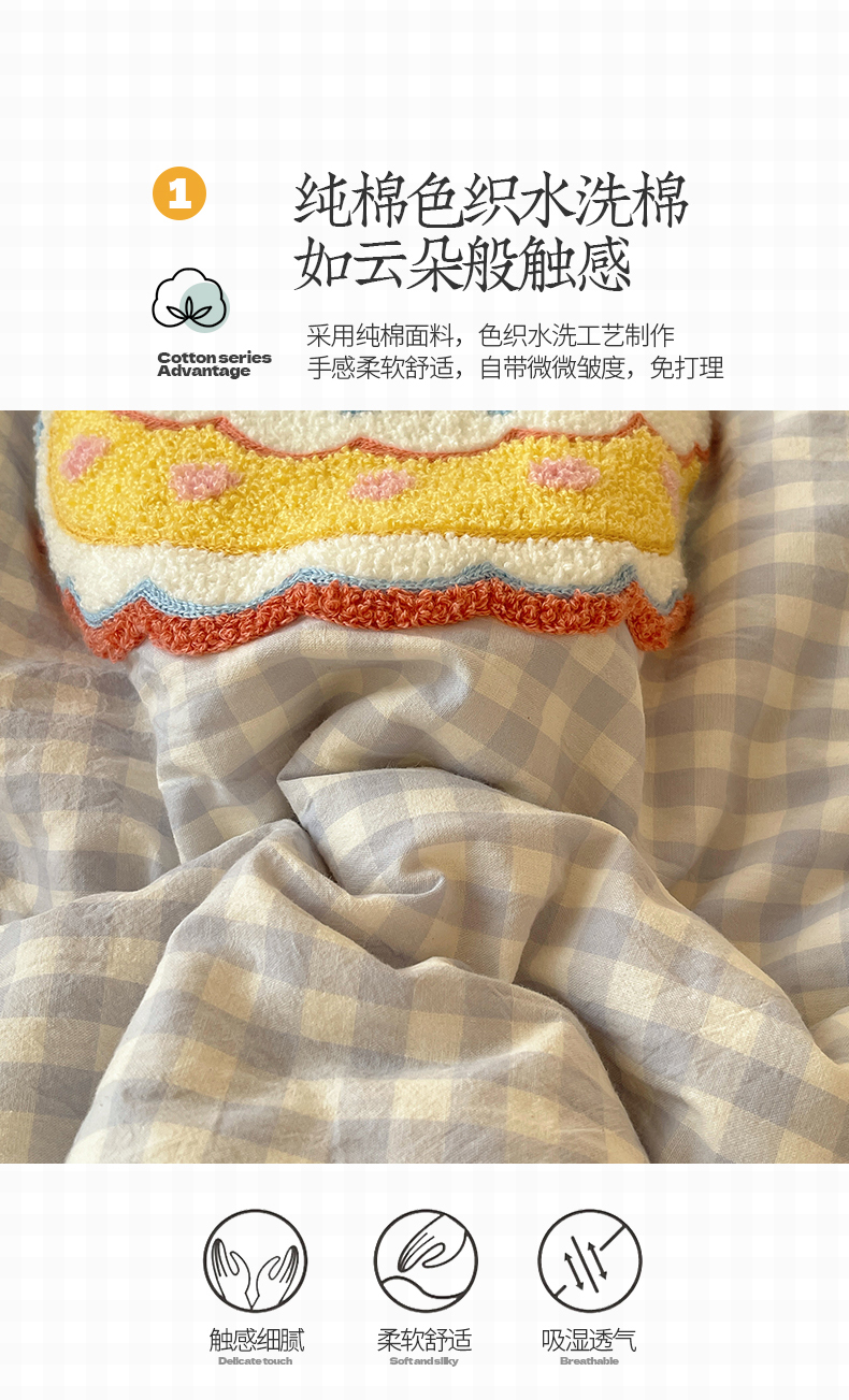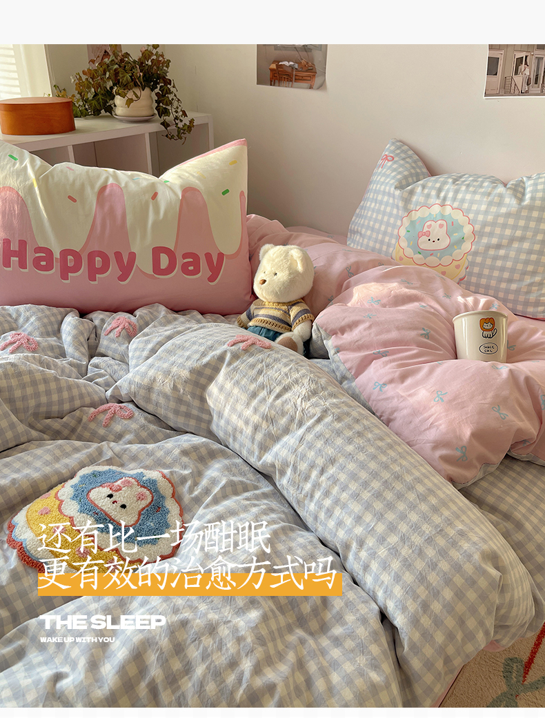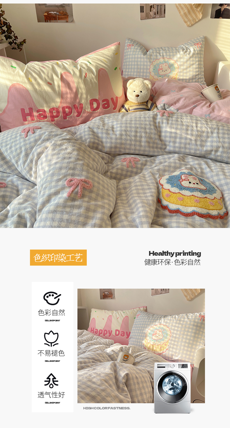当前位置: 91家纺网 > 商品网购 > 床品套件 > 四件套 > 全棉普通四件套 > 桃子家居2025新款A类ins纯棉数码印花毛巾绣印加绣色织水洗棉系列四件套 棉印加绣-蝴蝶结蛋糕兔