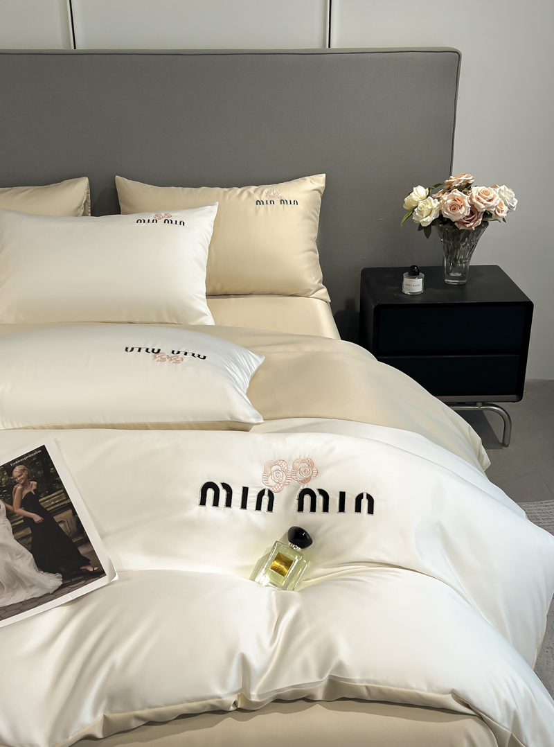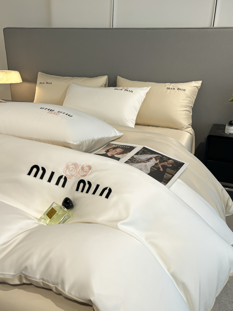 商品名称:大麦乐田 2025新品珍珠棉达芙刺绣四件套 达芙奶昔白+奶茶