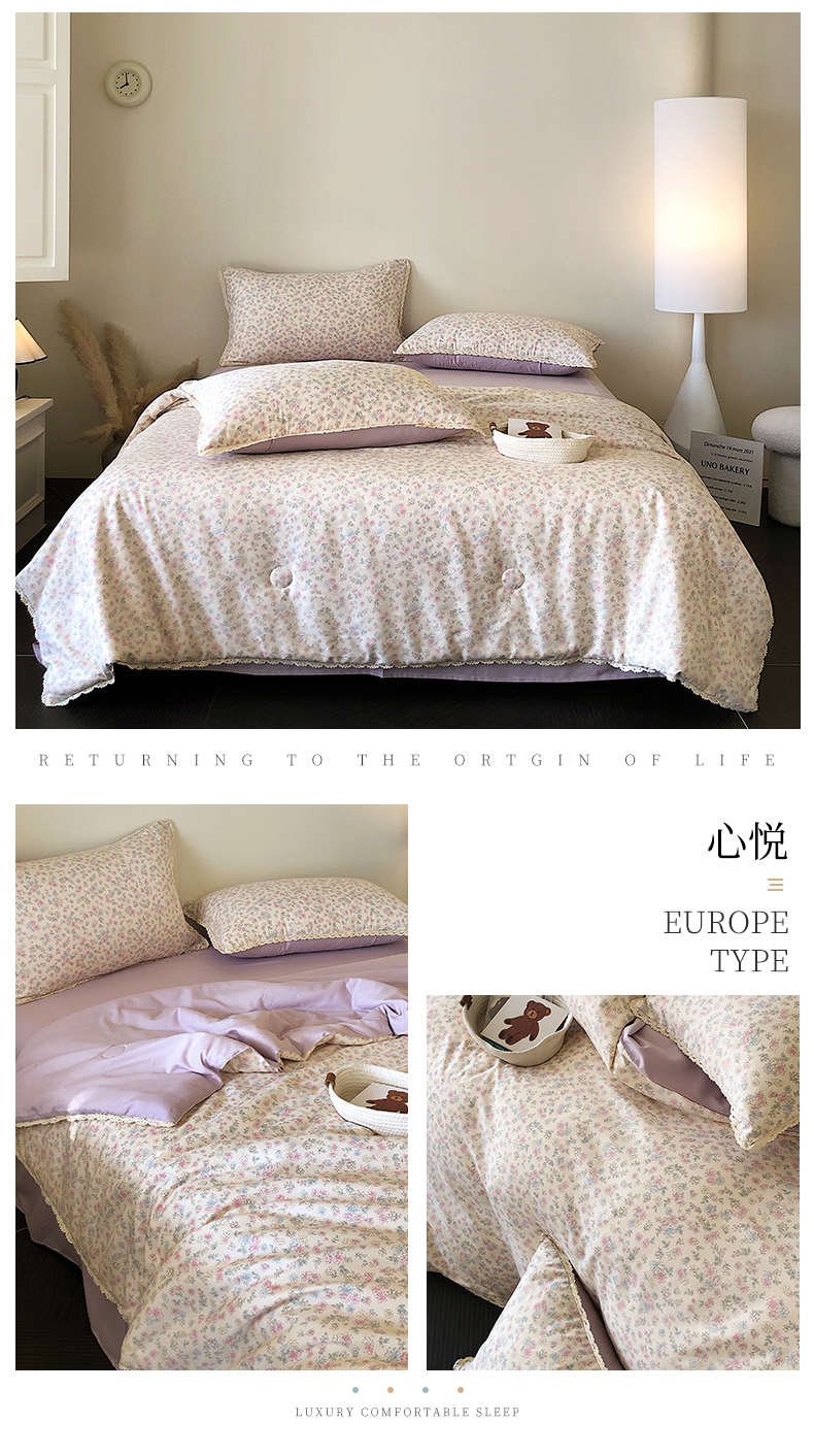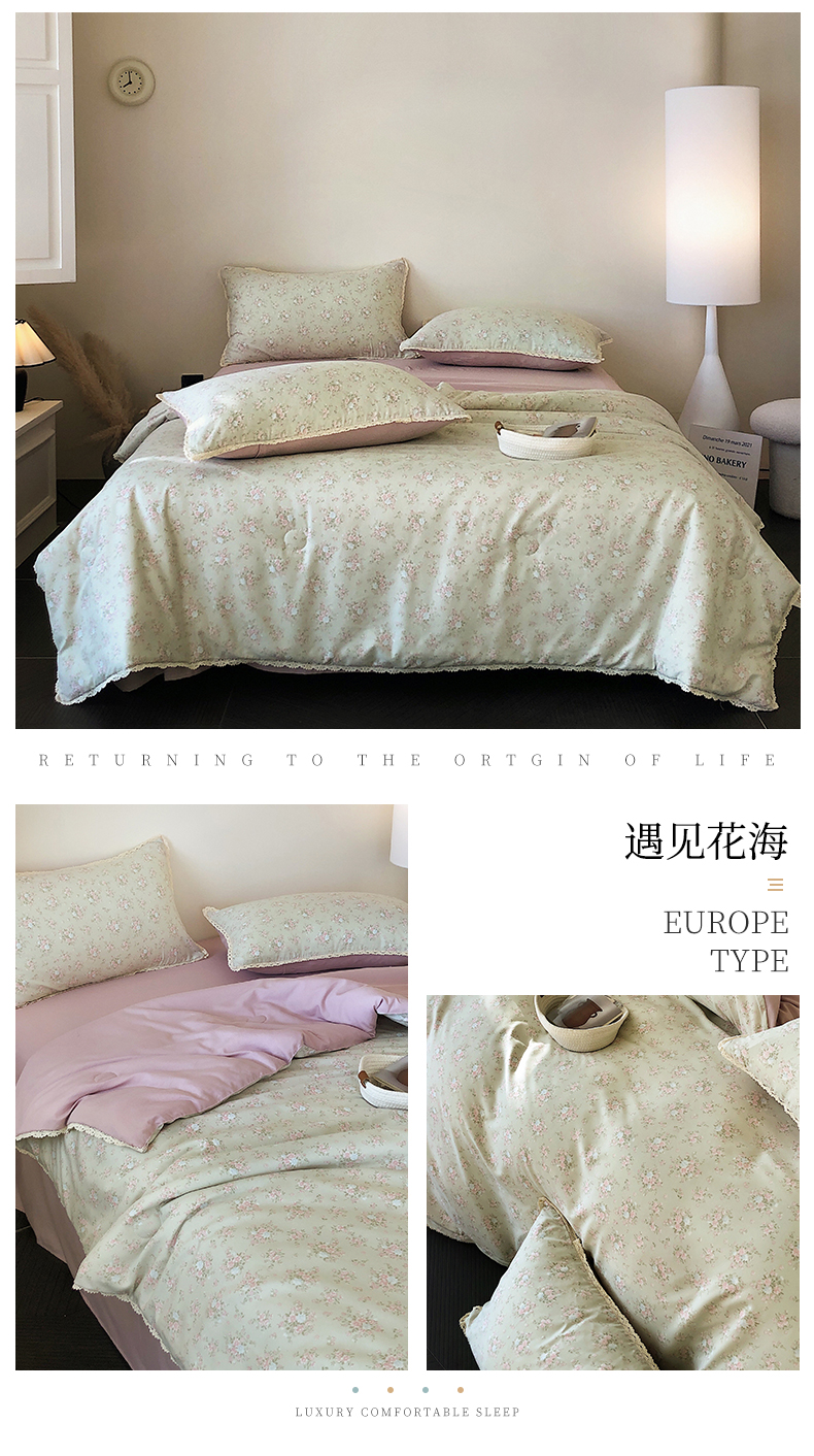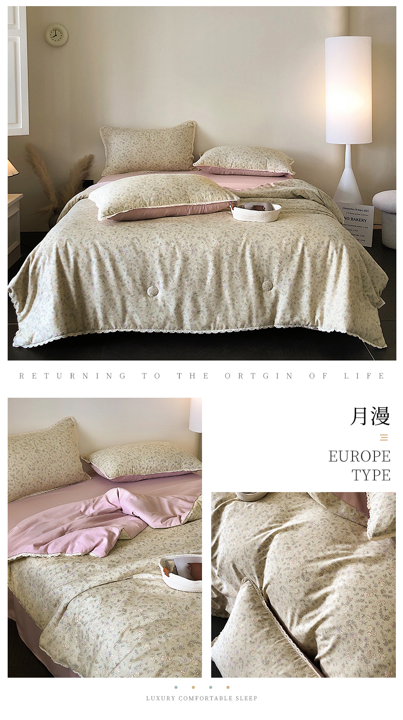 (总)换种生活 2024新款法式小香风全棉夏被四件套,艾莎,淡墨,兰图-粉,麦田,泡芙奶咖,晴空,新雨,元气桃桃