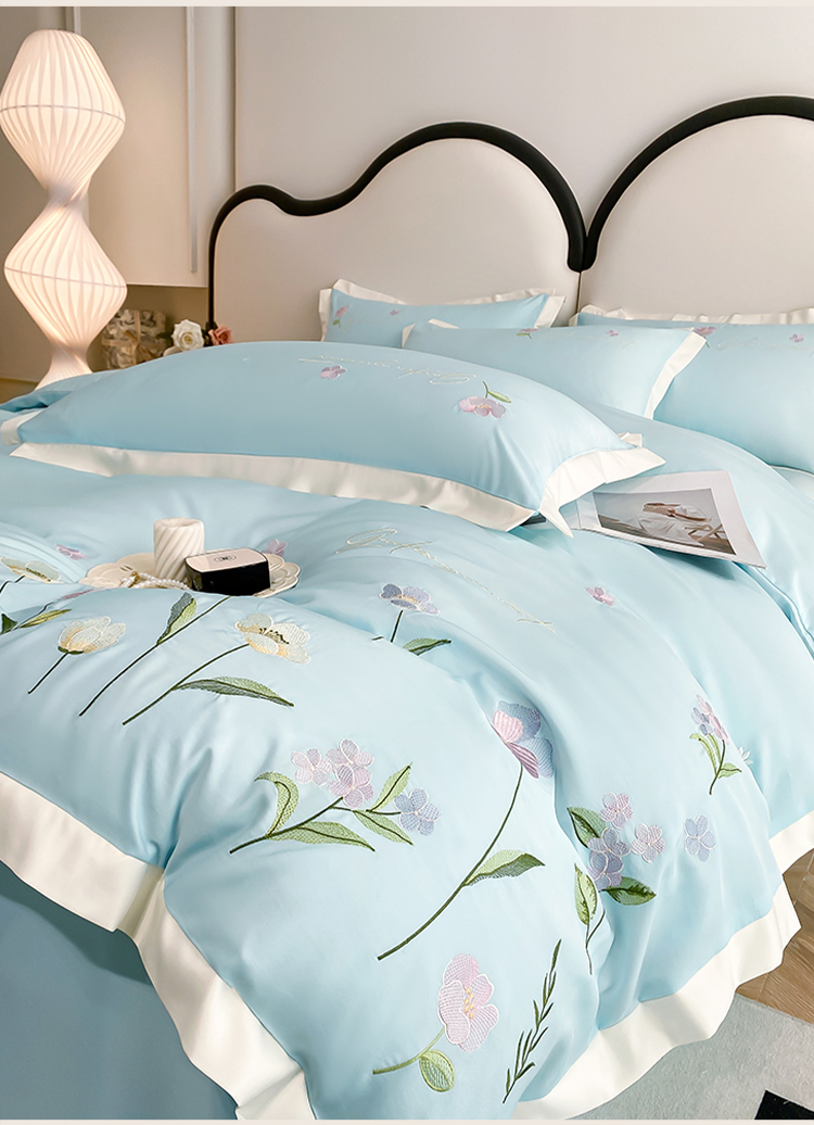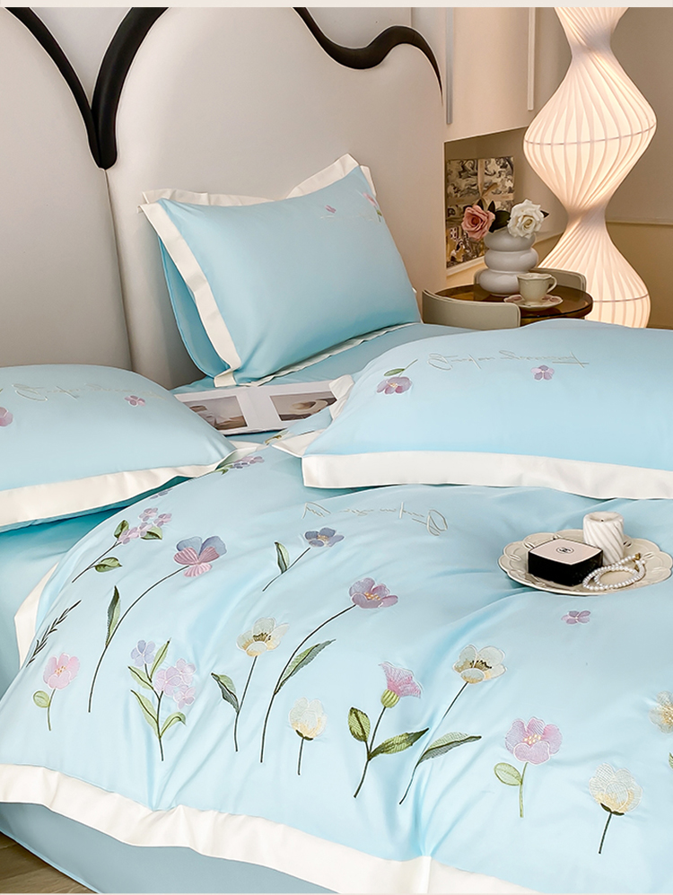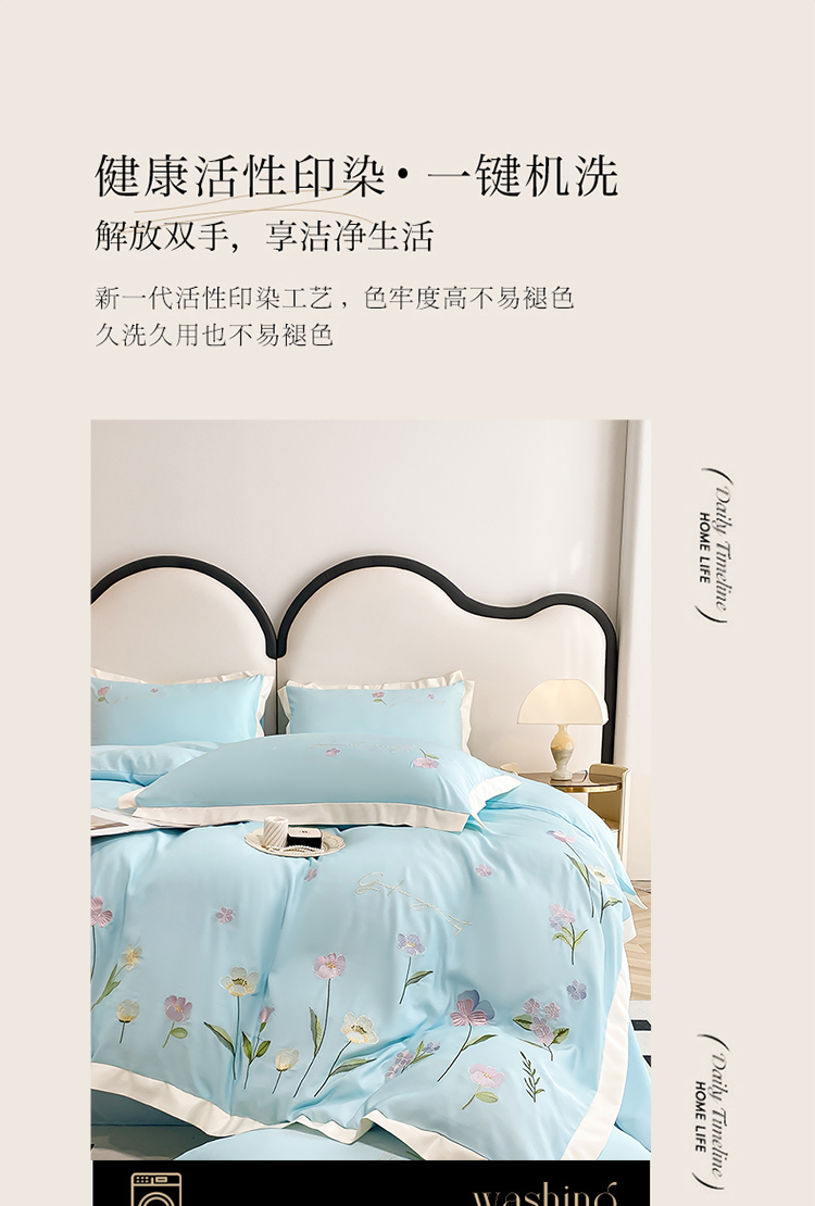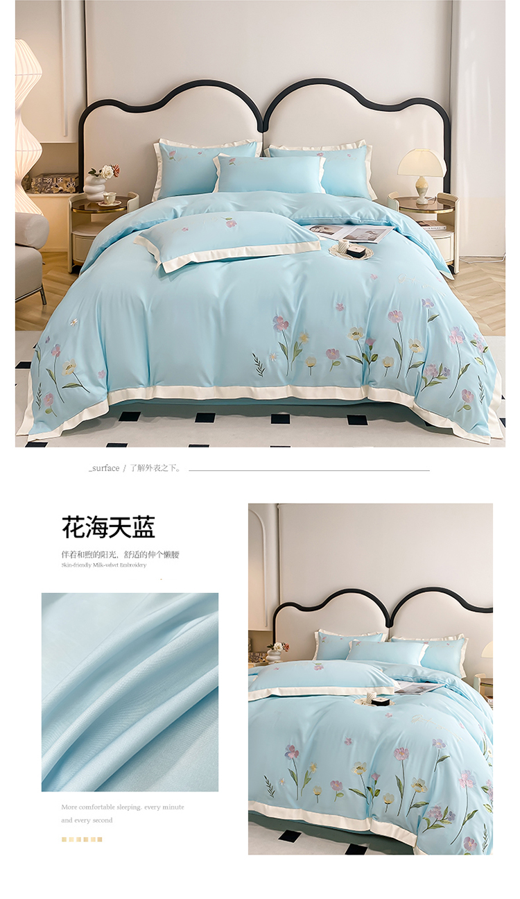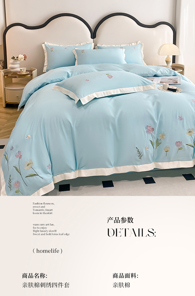 商品名称:狂想家 2025亲肤棉重工刺绣系列四件套-花海 花海天蓝
