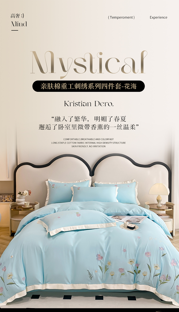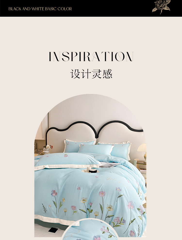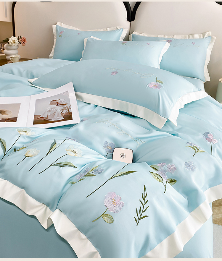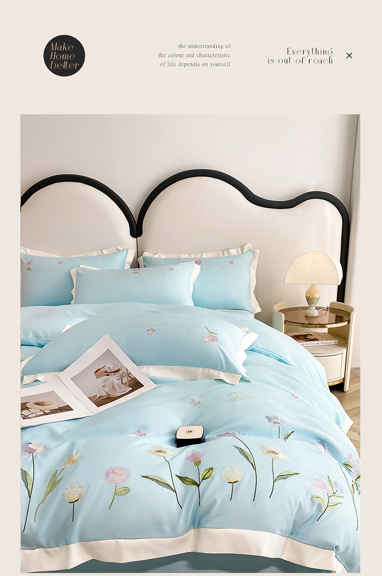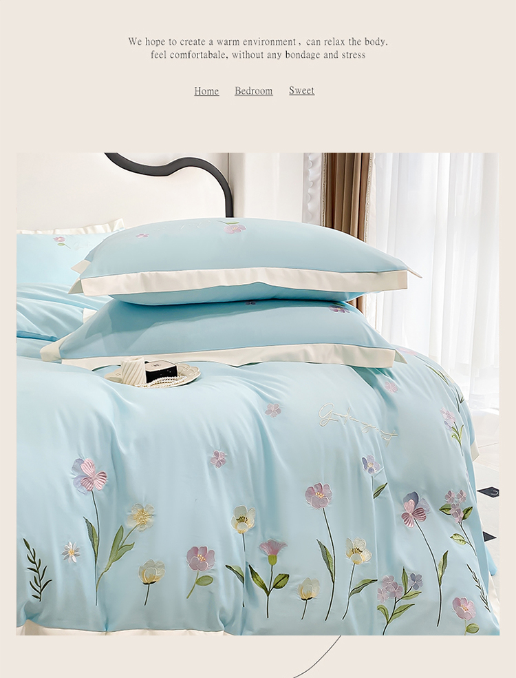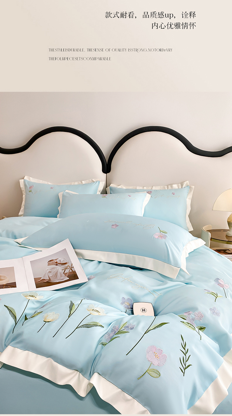 商品名称:狂想家 2025亲肤棉重工刺绣系列四件套-花海 花海天蓝