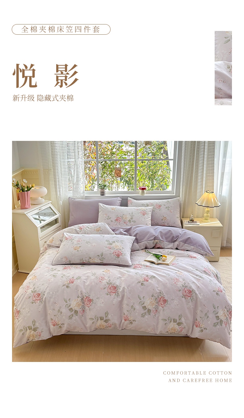 当前位置: 91家纺网 > 商品网购 > 床品套件 > 四件套 > 全棉普通四件套 > 元元被芯 2025新款40支13372全棉印花全棉夹棉床笠四件套 茉莉