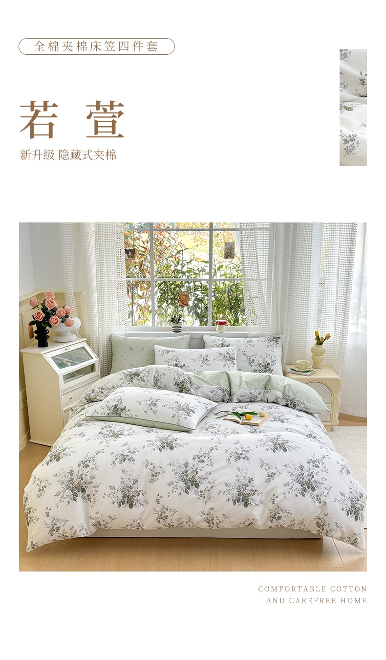 当前位置: 91家纺网 > 商品网购 > 床品套件 > 四件套 > 全棉普通四件套 > 元元被芯 2025新款40支13372全棉印花全棉夹棉床笠四件套 缘月
