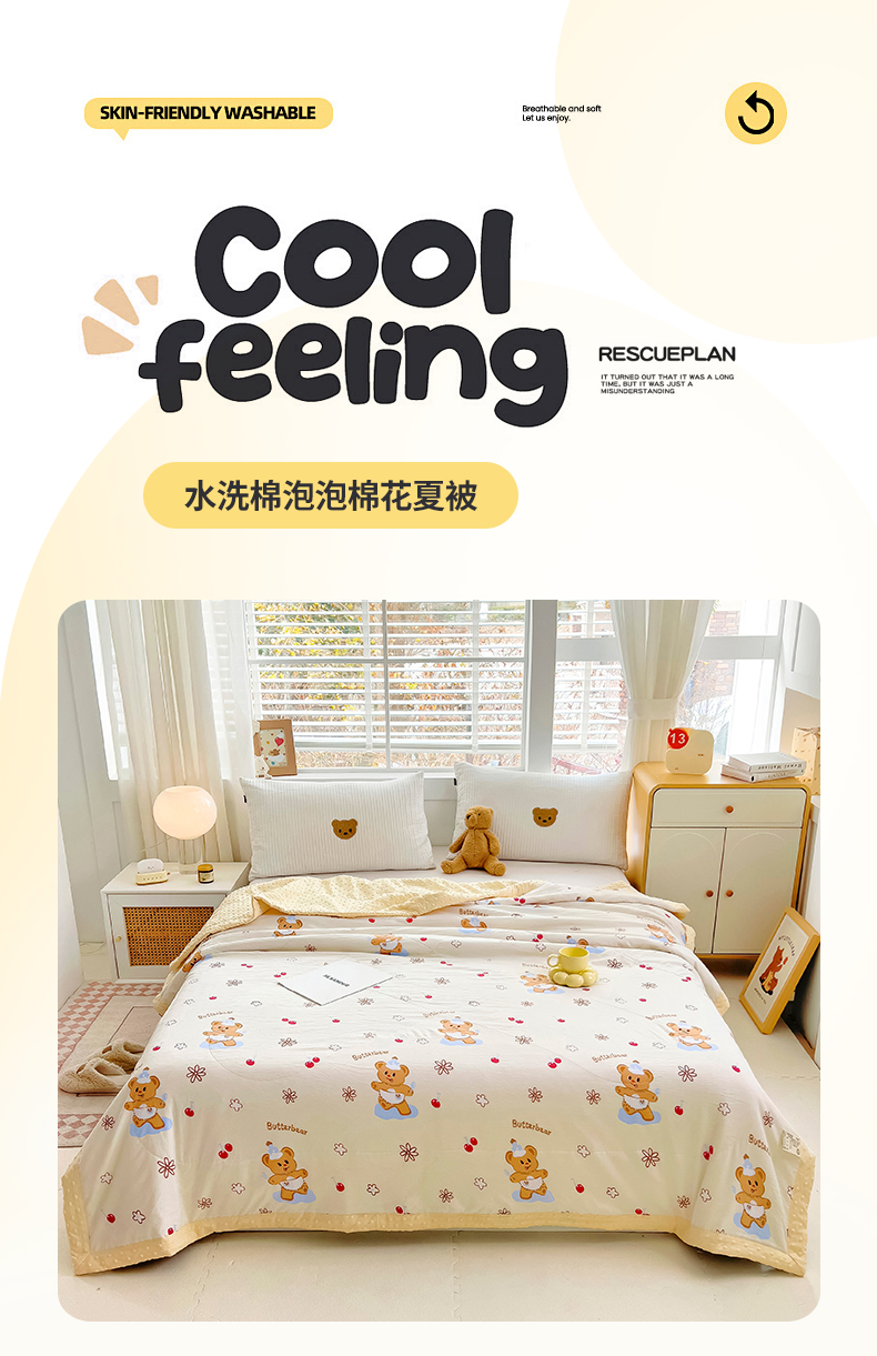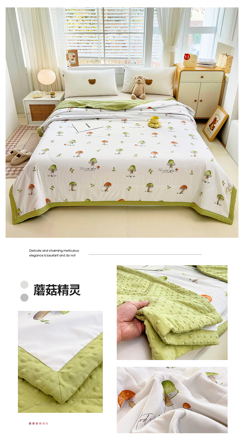 商品名称:鑫棉坊 2025新款A类水洗棉豆豆双层纱棉花夏凉被 绿野仙踪