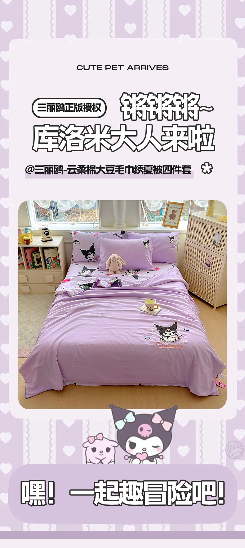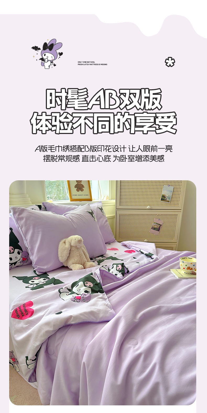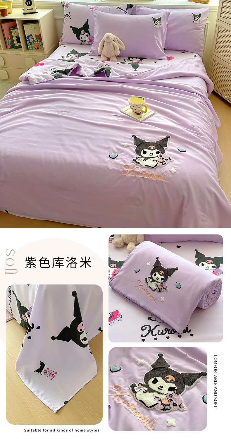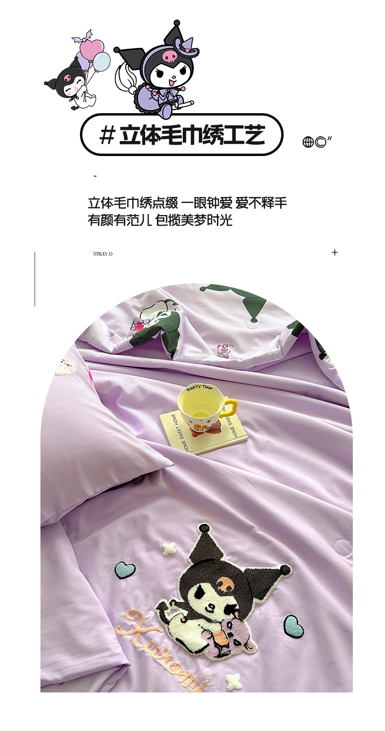 商品名称:木堇家居 2025春夏三丽鸥云柔棉毛巾绣夏被四件套 毛巾绣-紫色库洛米