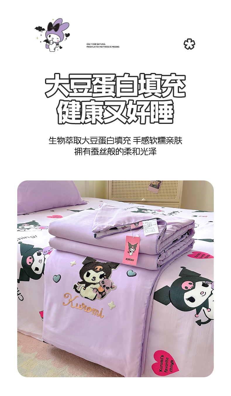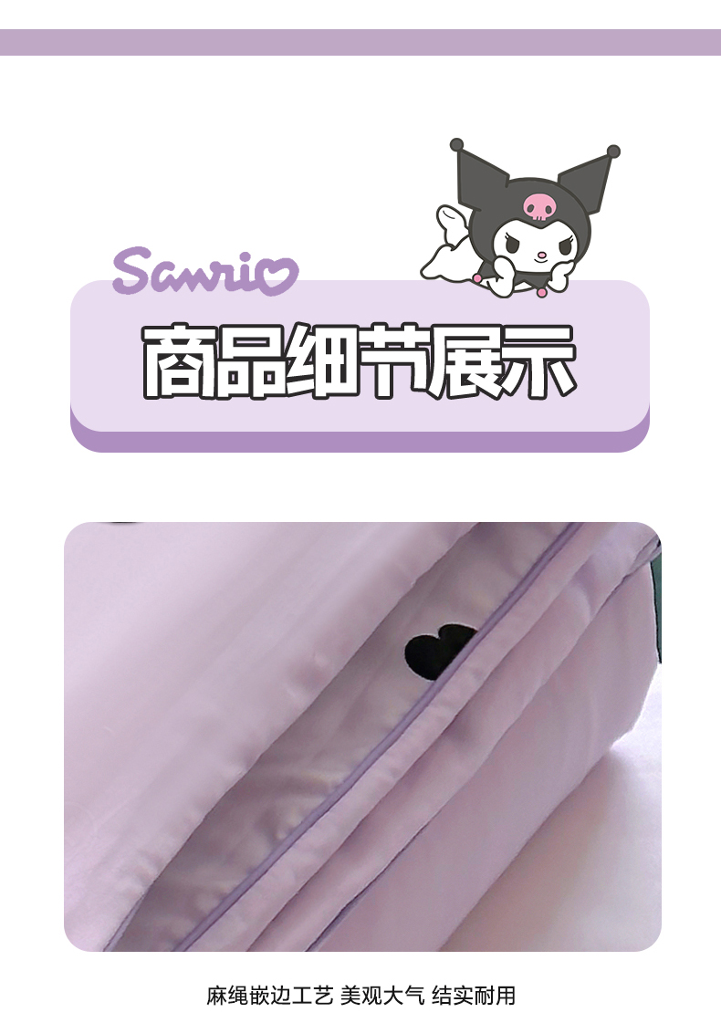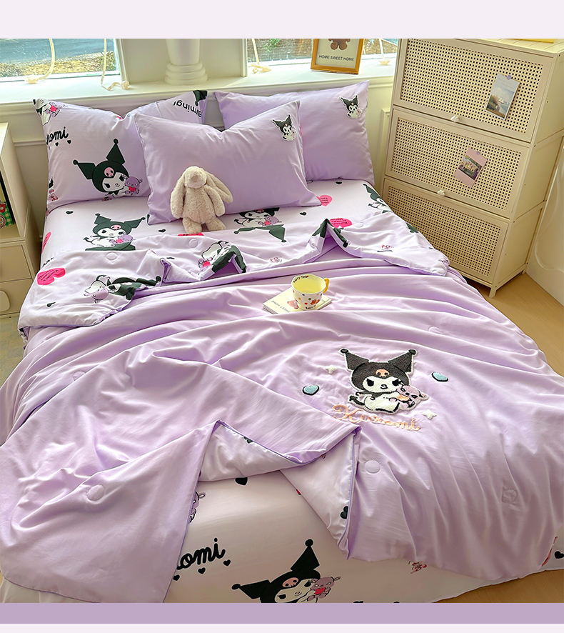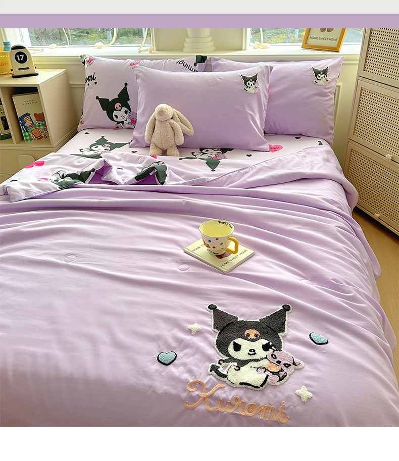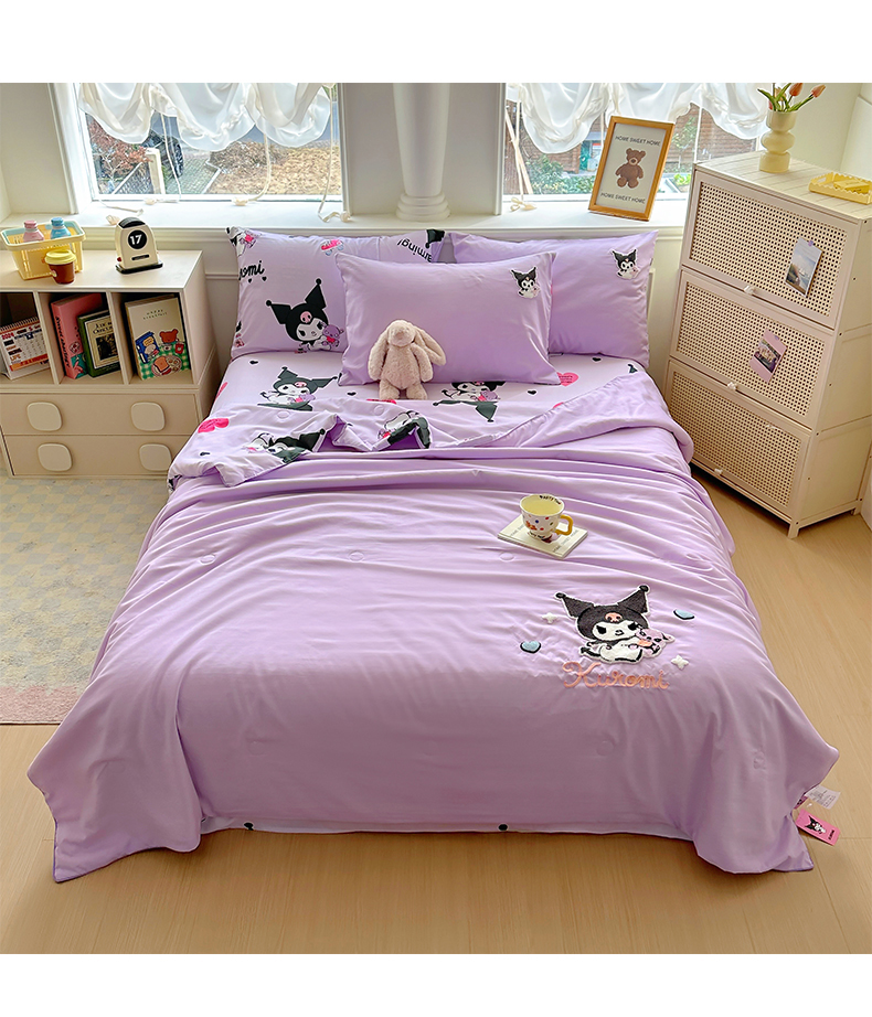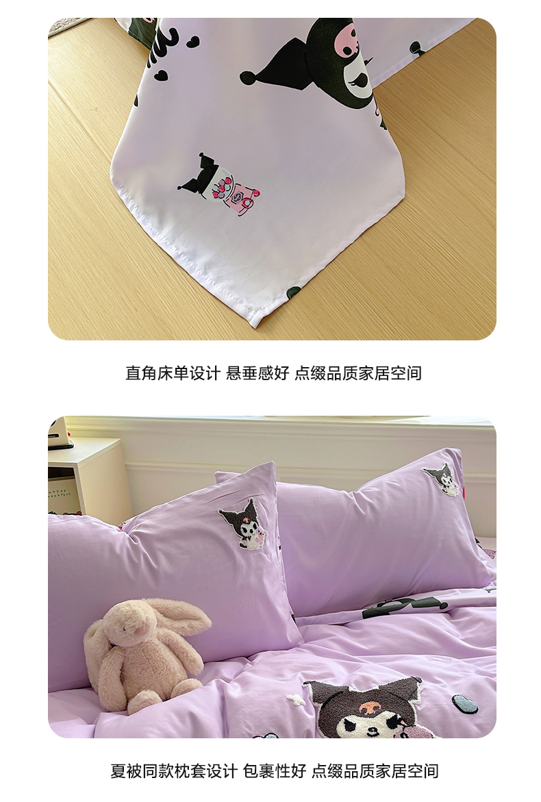 商品名称:木堇家居 2025春夏三丽鸥云柔棉毛巾绣夏被四件套 毛巾绣-紫色库洛米
