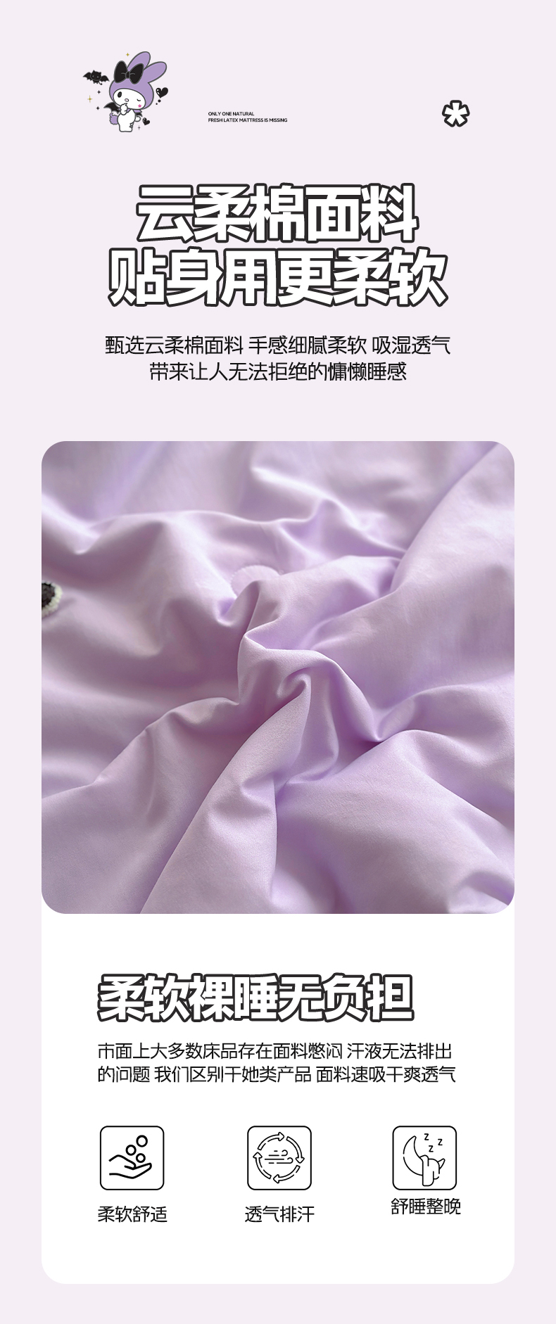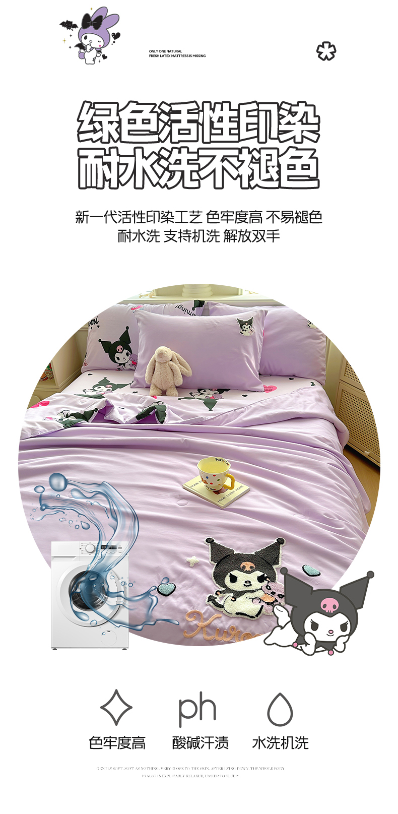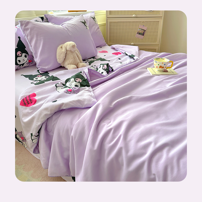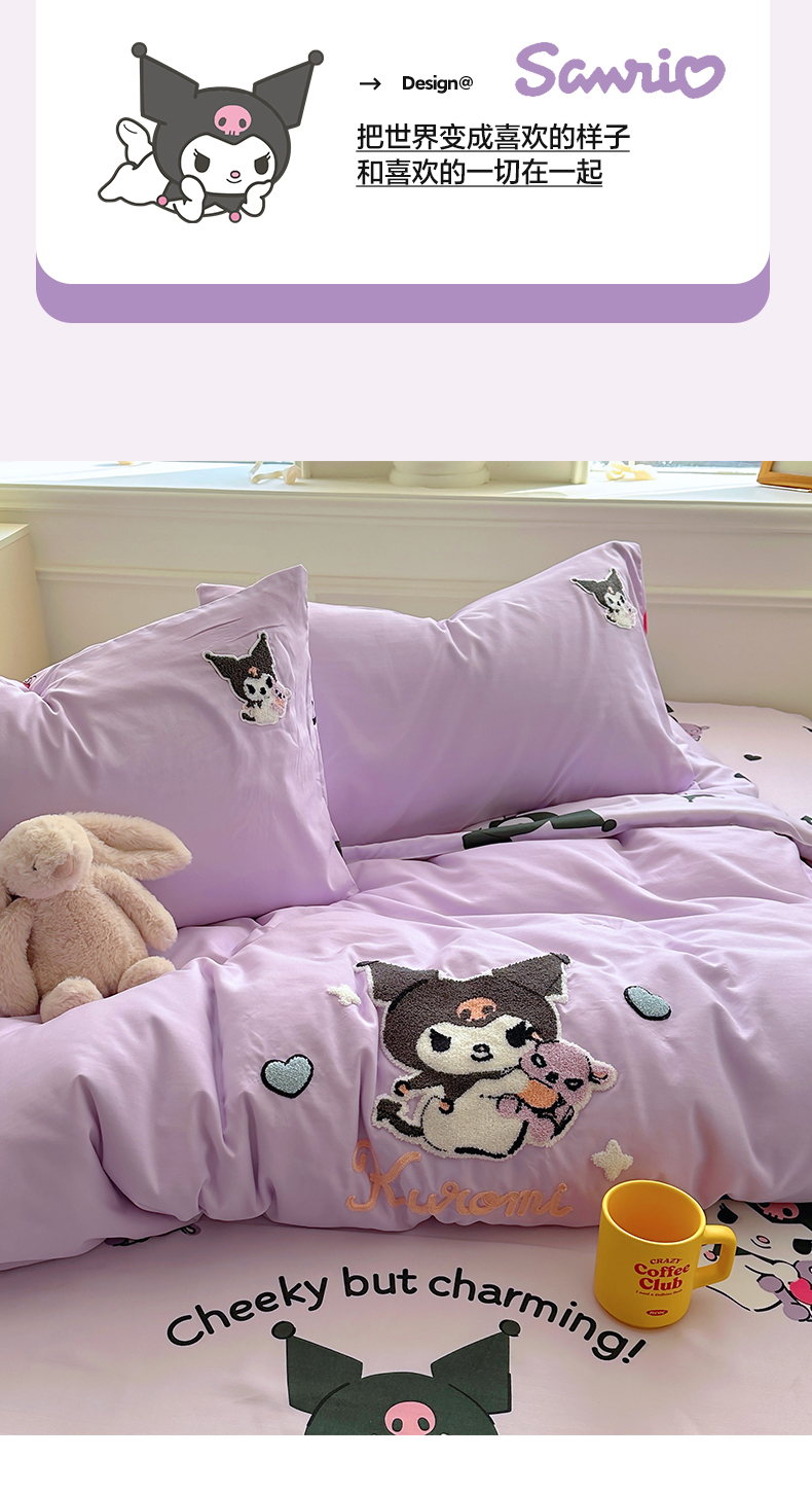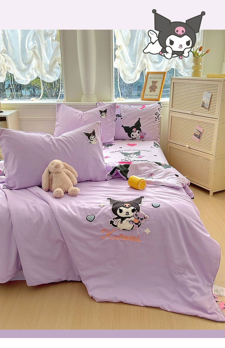 商品名称:木堇家居 2025春夏三丽鸥云柔棉毛巾绣夏被四件套 毛巾绣-紫色库洛米
