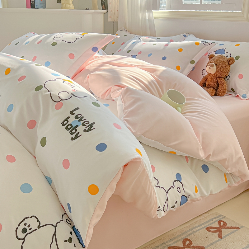 梦卓家纺 2025新款亲肤芦荟棉单被套 彩点小熊