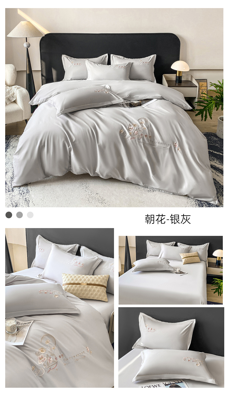 当前位置: 91家纺网 > 商品网购 > 床品套件 > 四件套 > 其它四件套 > 昊翔家纺 【量大价优】2025新款全棉纯棉长绒棉刺绣绣花四件套【配礼盒提供买家秀】 朝花-银灰