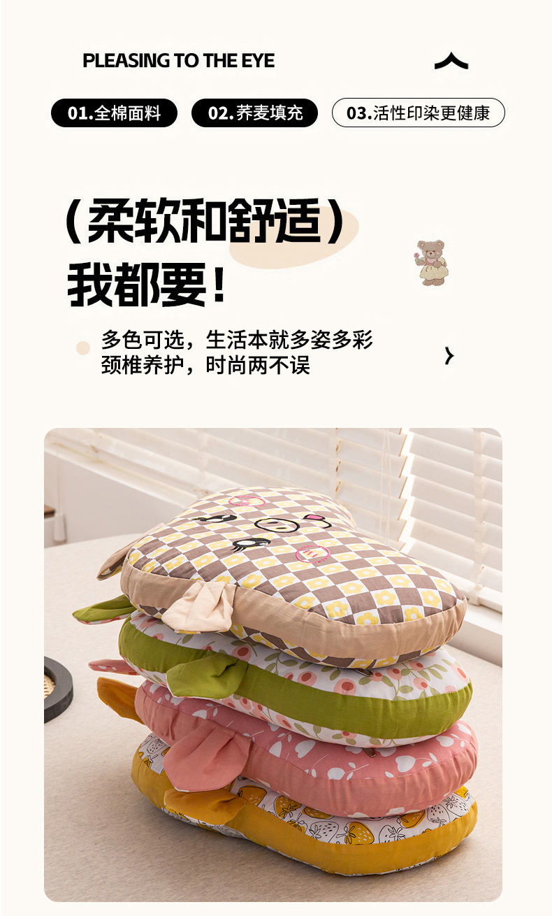 当前位置: 91家纺网 > 商品网购 > 枕头/枕芯/保健枕/颈椎枕 > 明星枕业 2025新款全棉儿童卡通荞麦枕全荞麦护颈枕 呆萌猪黄