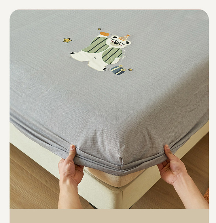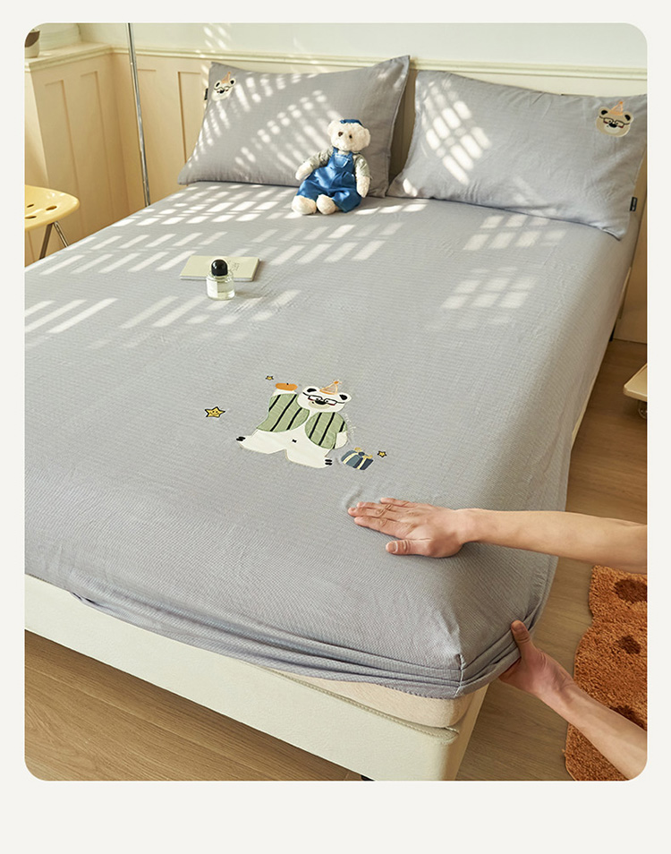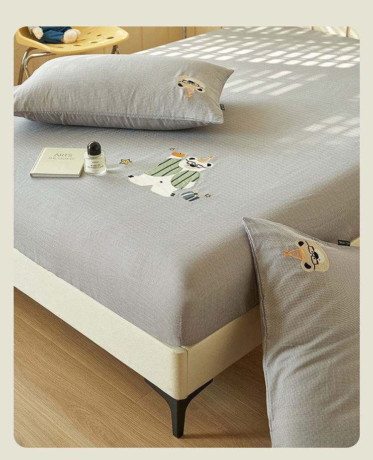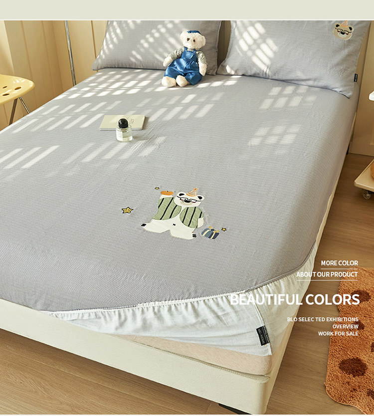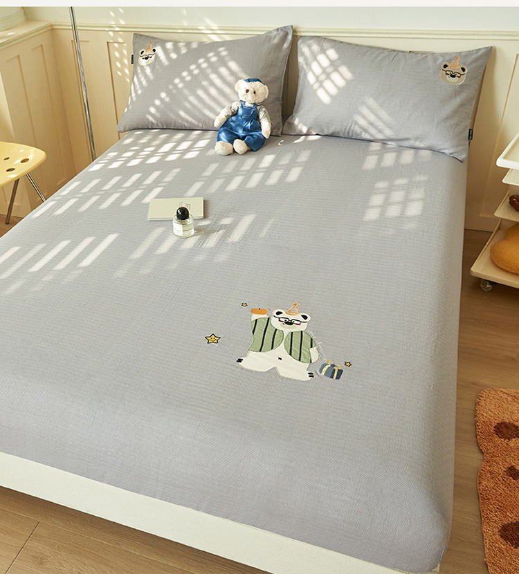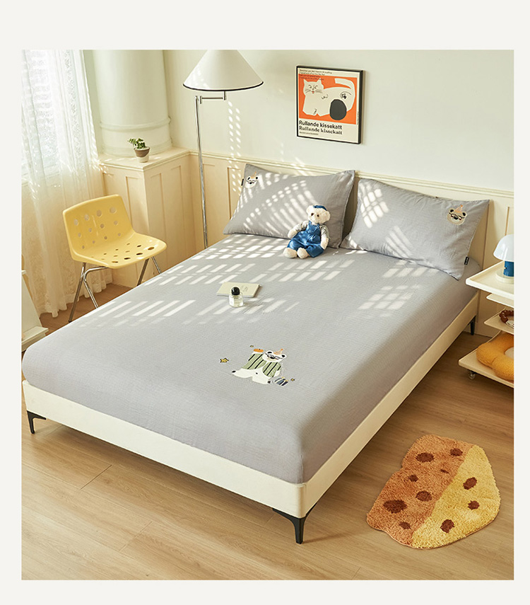 寐绸家纺 2025新款纯棉双层纱贴布绣单床笠 贴布双层纱床笠-浅灰