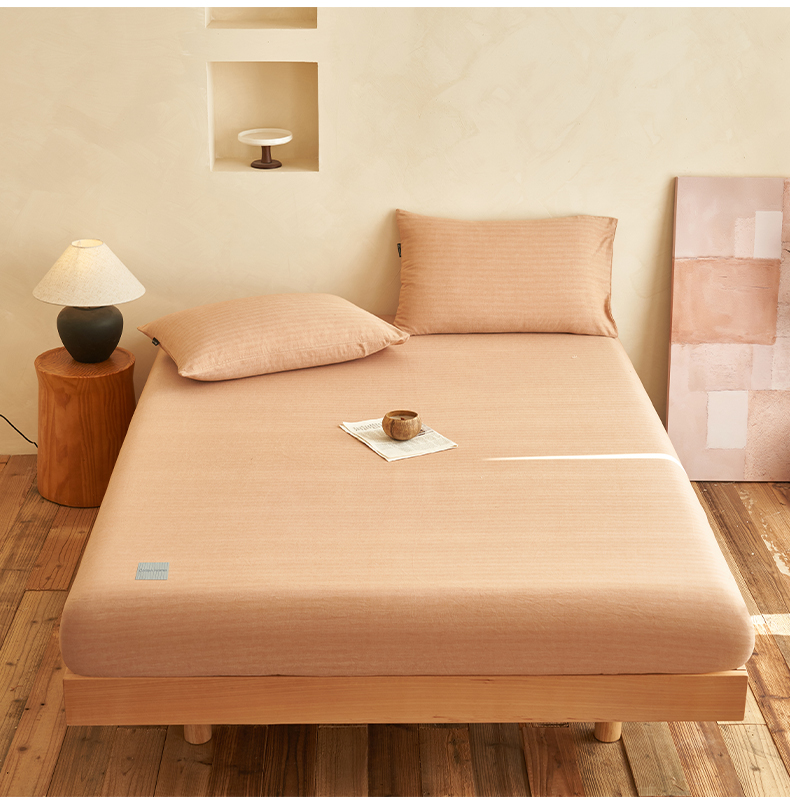 • 91家纺网 家纺一手货源 找家纺 寐绸家纺 2025新款双层纱人字斜提花单床笠 人字斜床笠-豆沙