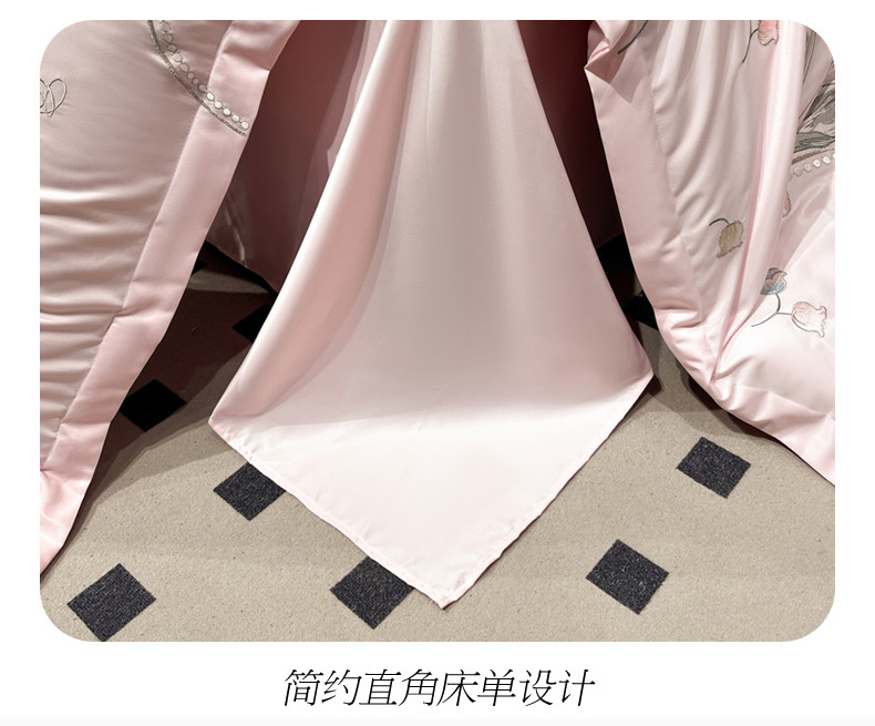 商品名称:菲儿家纺 2025新款轻奢简约冰丝刺绣四件套-铃兰 铃兰-粉