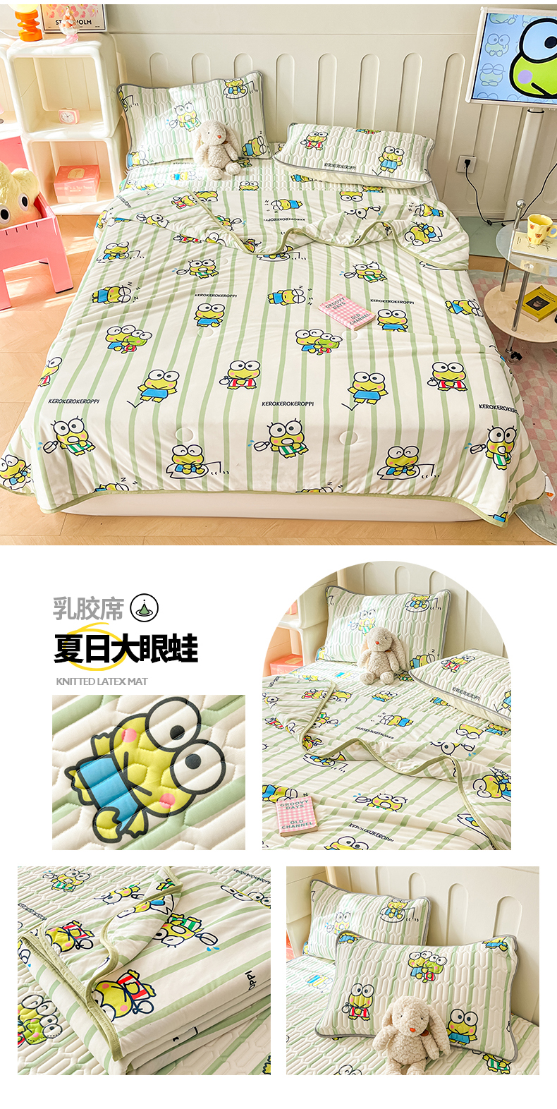 当前位置: 91家纺网 > 商品网购 > 床品套件 > 四件套 > 夏被四件套 > 金爱家2025新款A类三丽鸥高品质可组合凉感丝乳胶席牛奶丝针织棉软糯夏被四件套 乳胶席-夏日大眼蛙