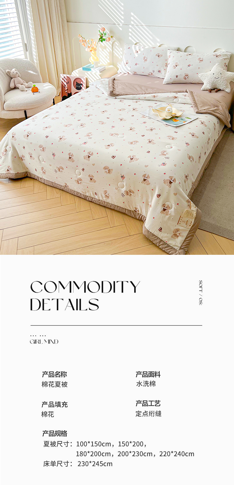 商品名称:爱屋及屋2025新款棉花夏被 曲奇狗