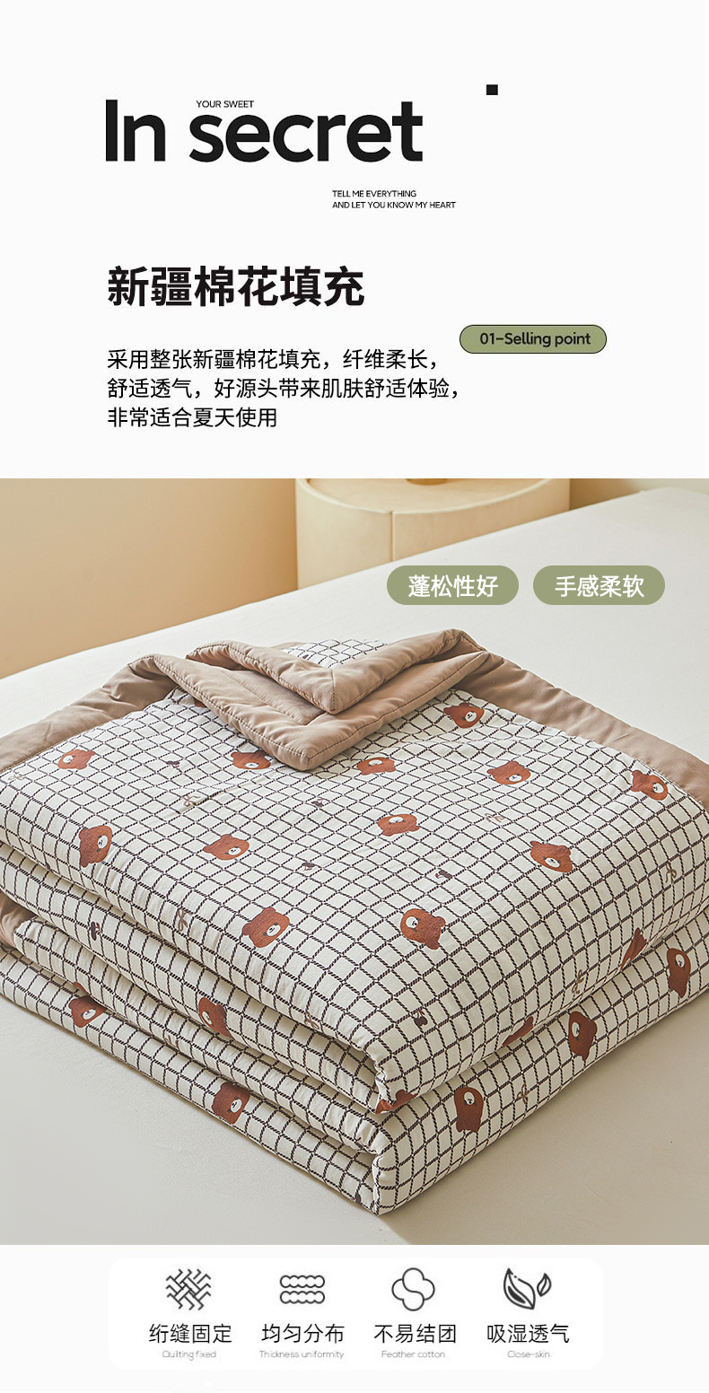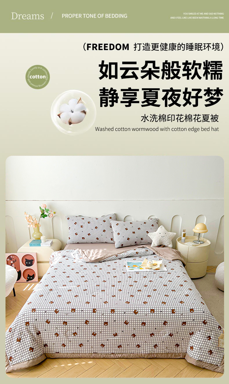 商品名称:爱屋及屋2025新款棉花夏被 棕熊方格