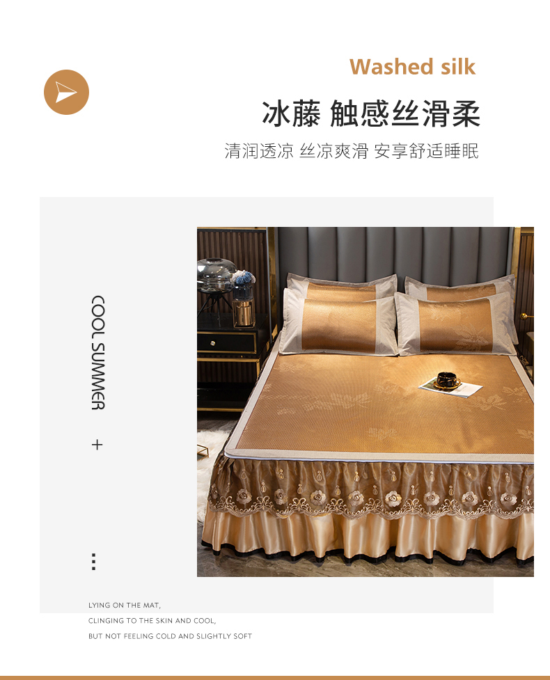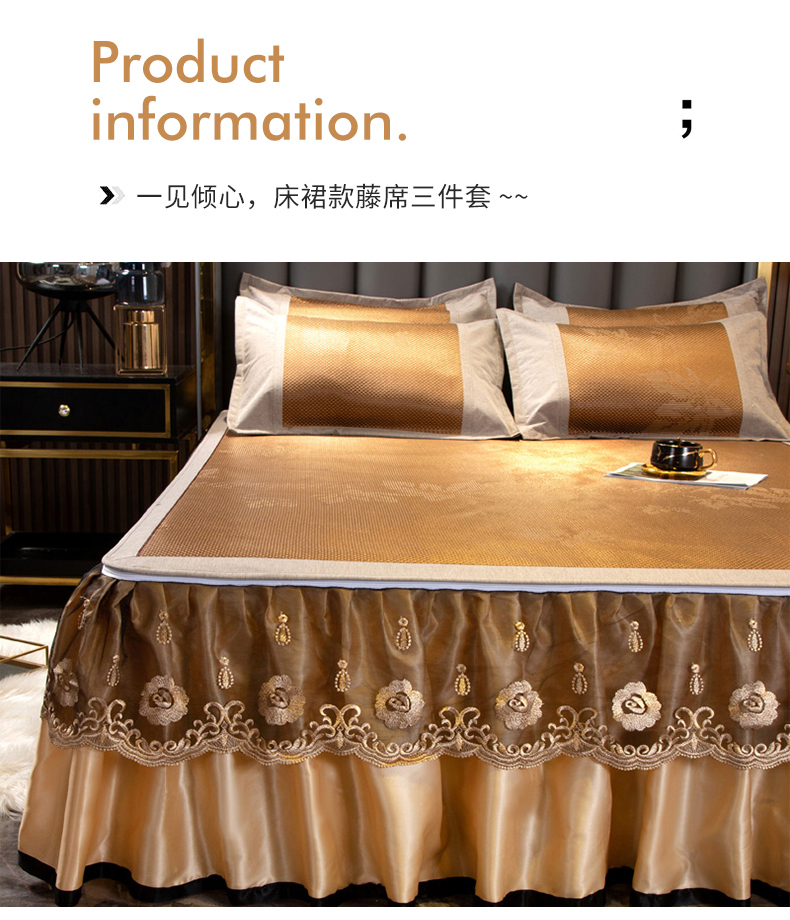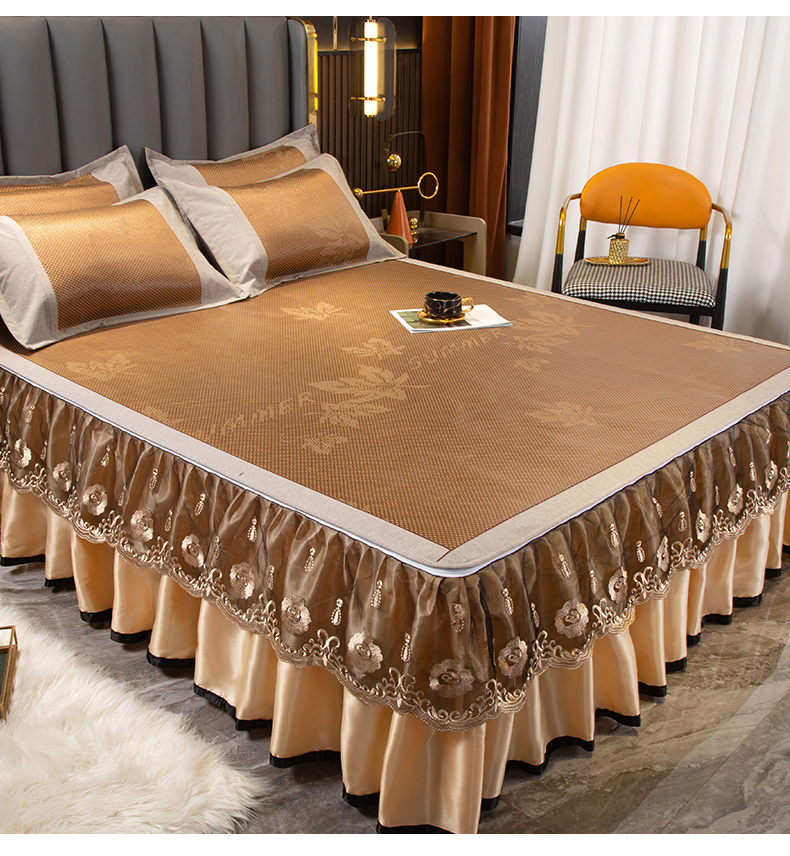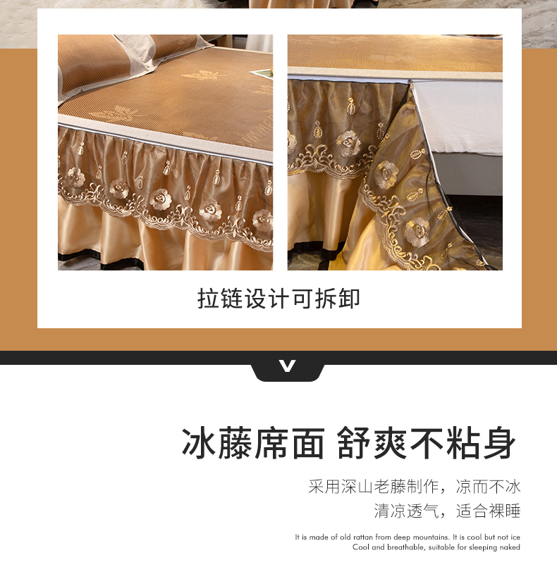 商品名称:能好家纺 2025新款提花冰藤席凉席床裙款 枫叶咖