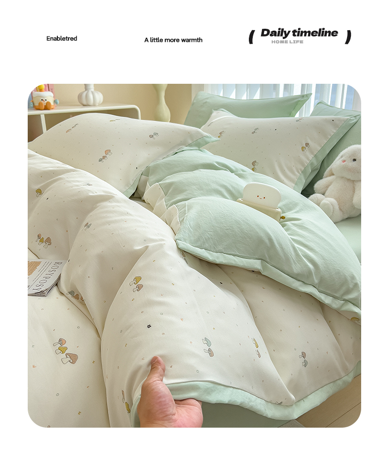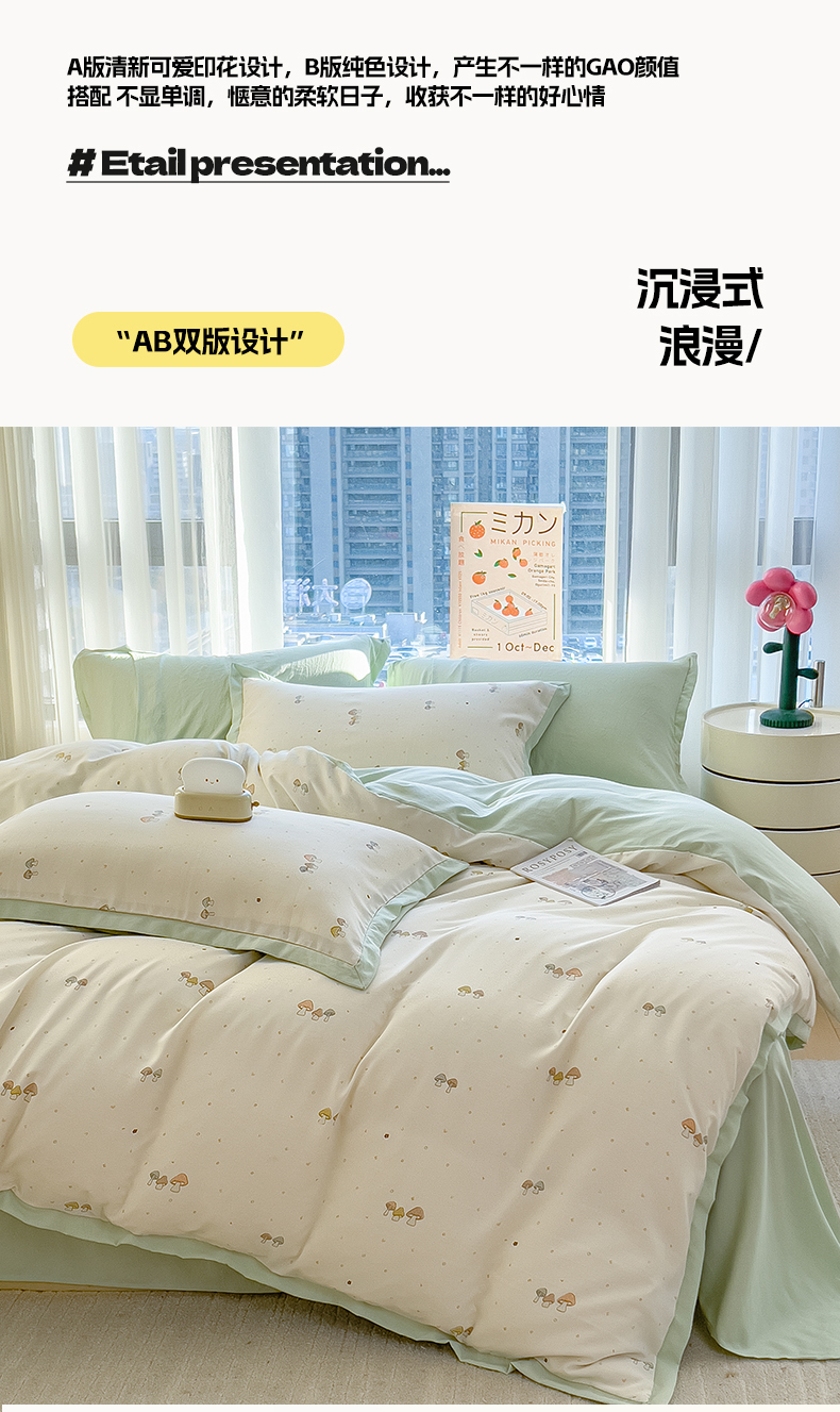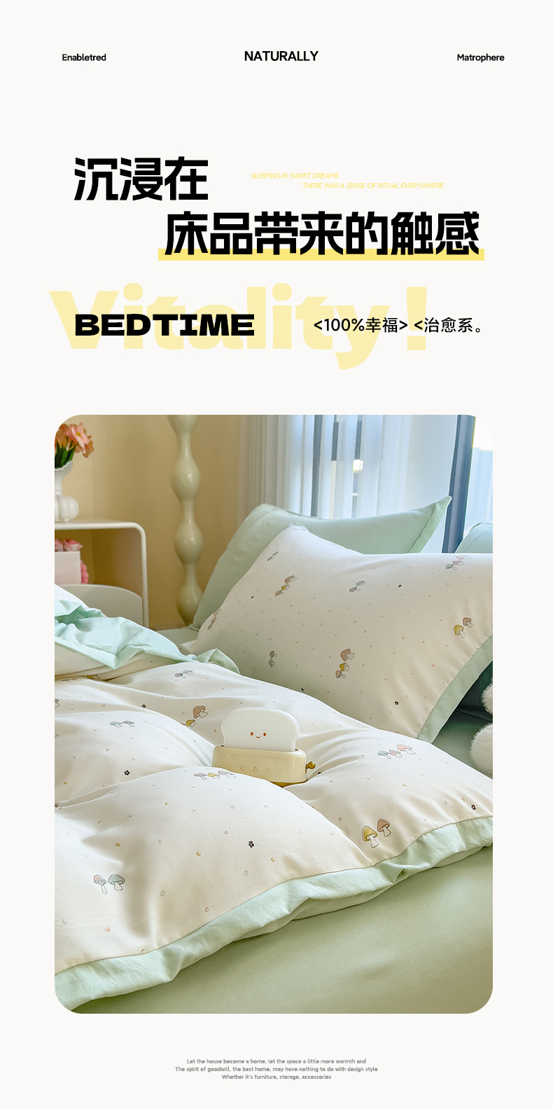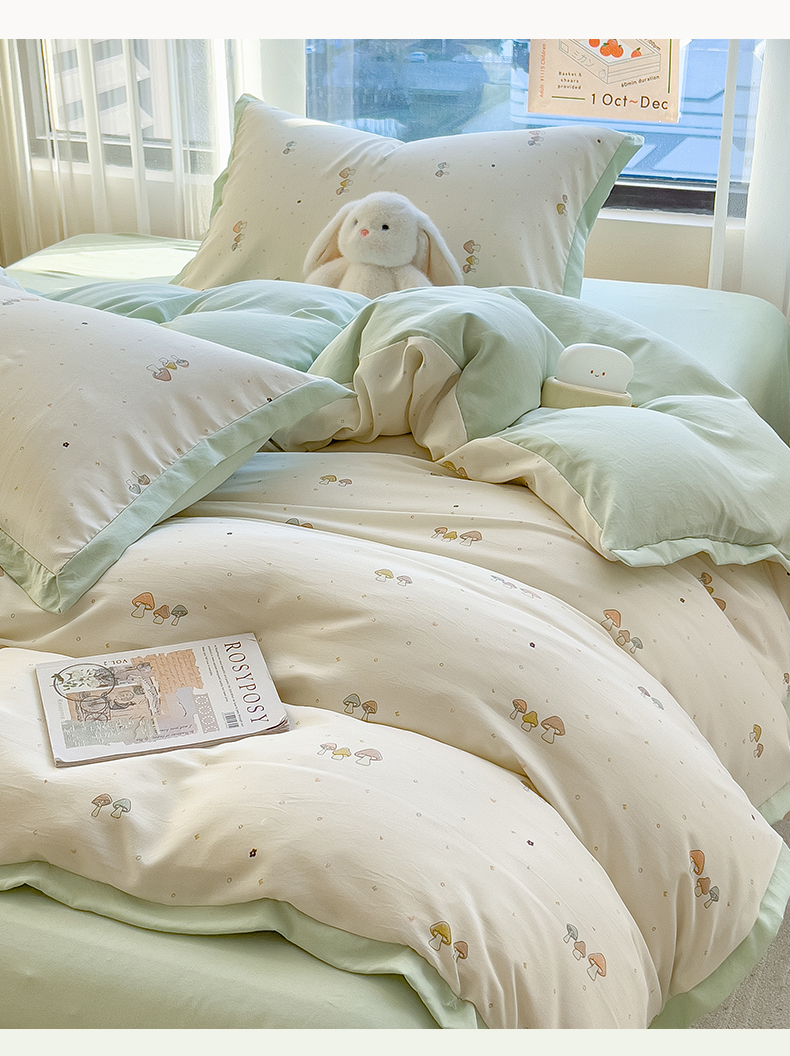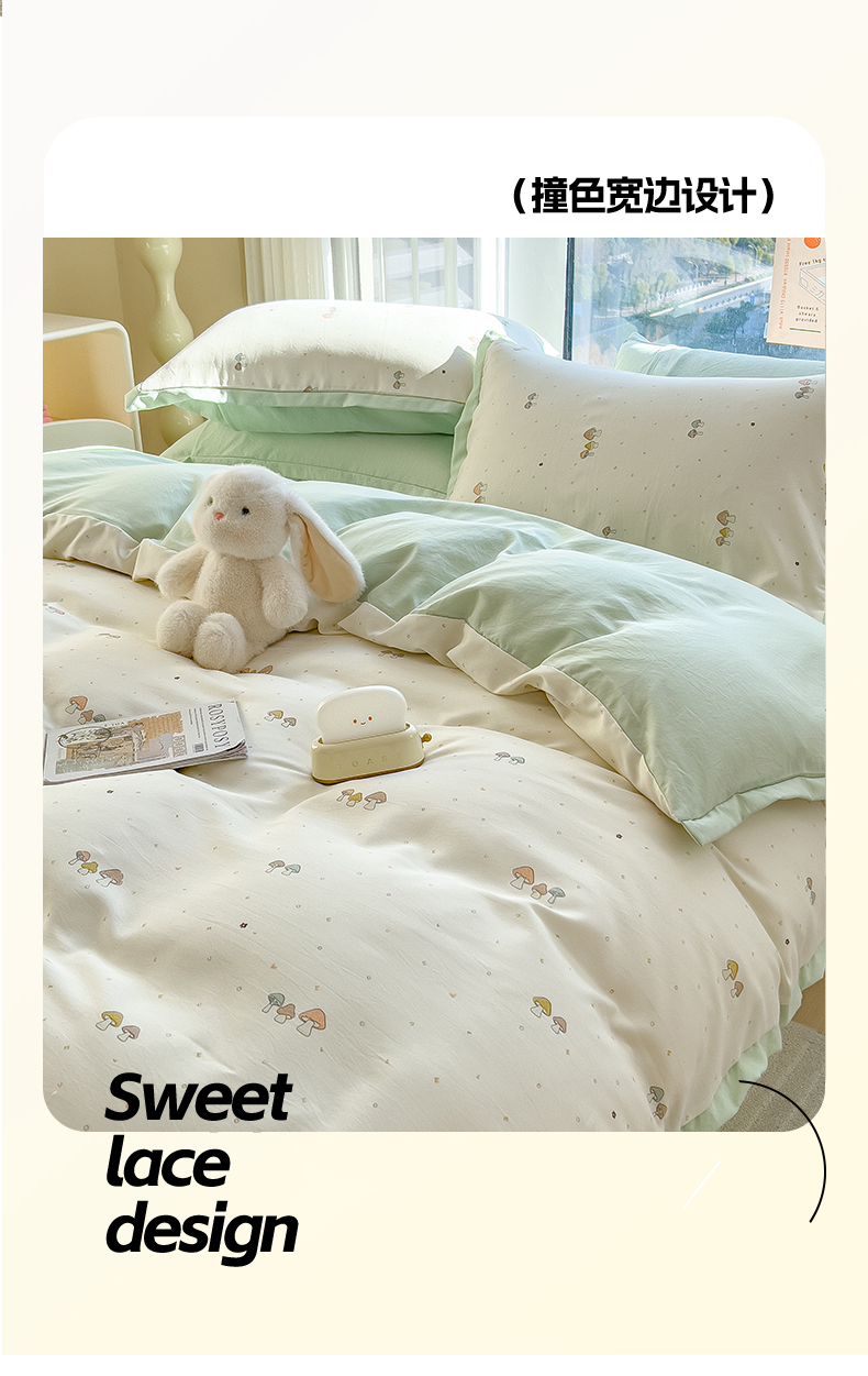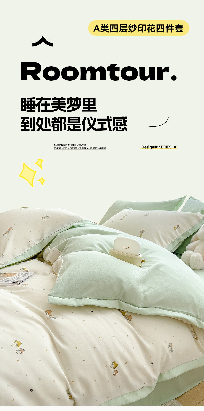 当前位置: 91家纺网 > 商品网购 > 床品套件 > 四件套 > 双层纱四件套 > 兄弟坊 2025新款小清新四层纱印花四件套 蘑菇屋
