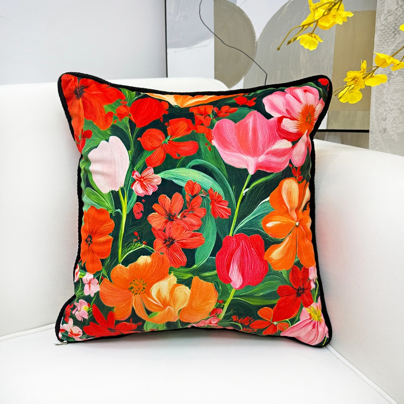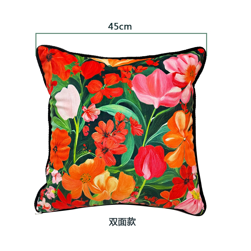 爱家居 2025新款抱枕沙发新中式靠垫轻奢高级感靠枕床头大靠背正方形抱枕套卡通花卉 幸福花海