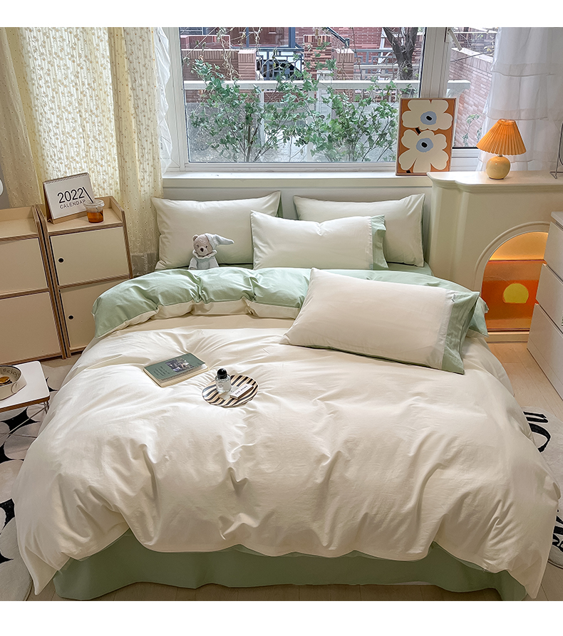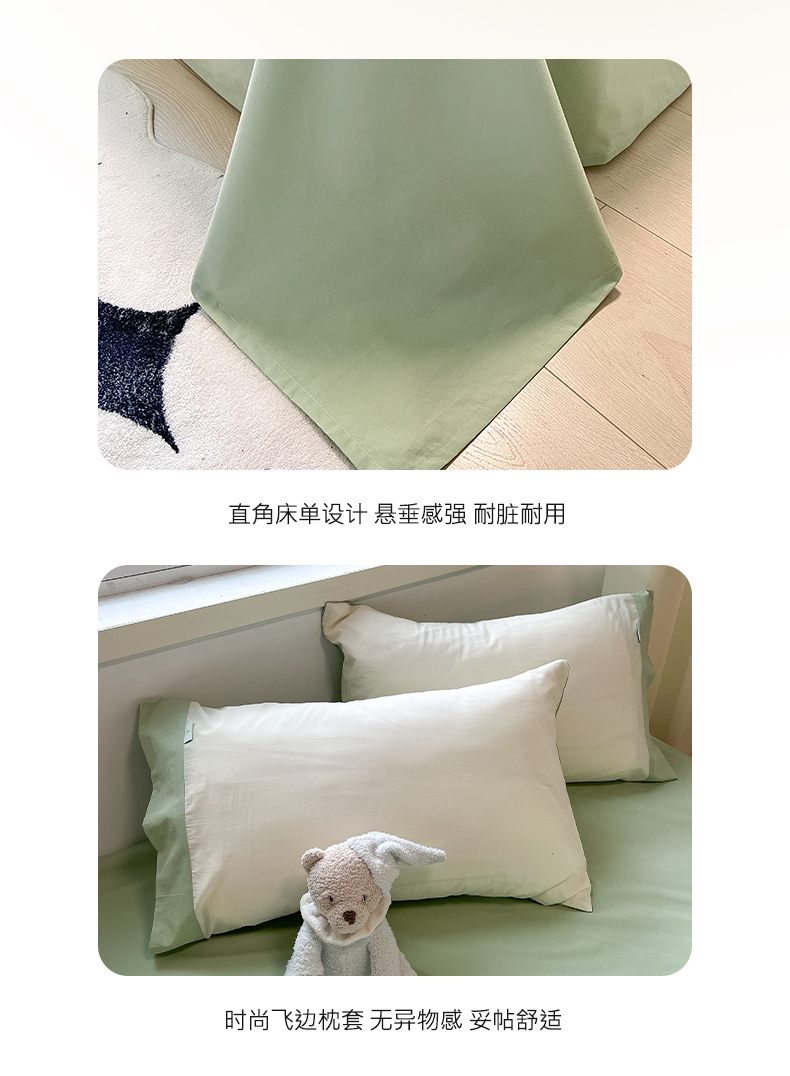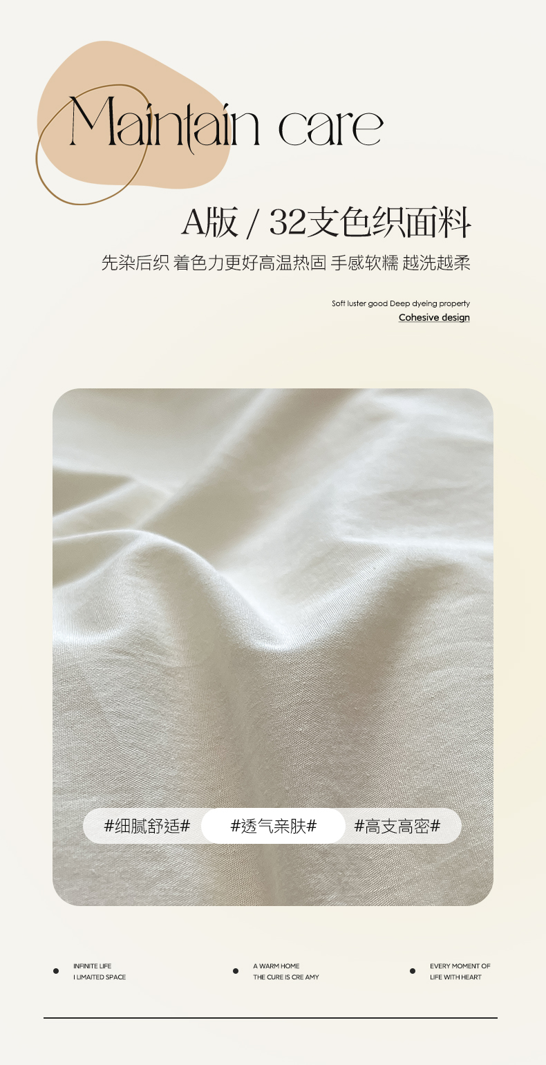 卡巴伦家纺 2025新款A版色织32支B版40支纯棉A类水洗棉四件套单被套 奶昔-月白绿