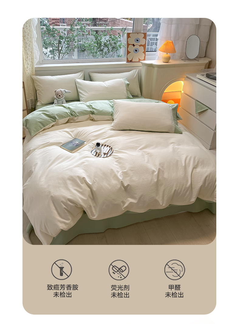商品名称:卡巴伦家纺 2025新款A版色织32支B版40支纯棉A类水洗棉四件套单被套 奶昔-月白绿