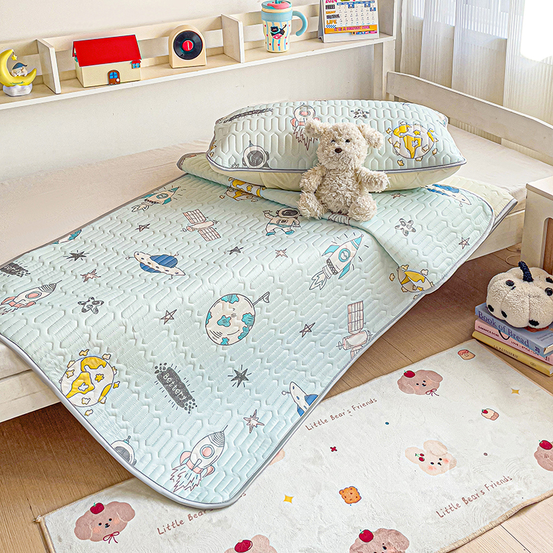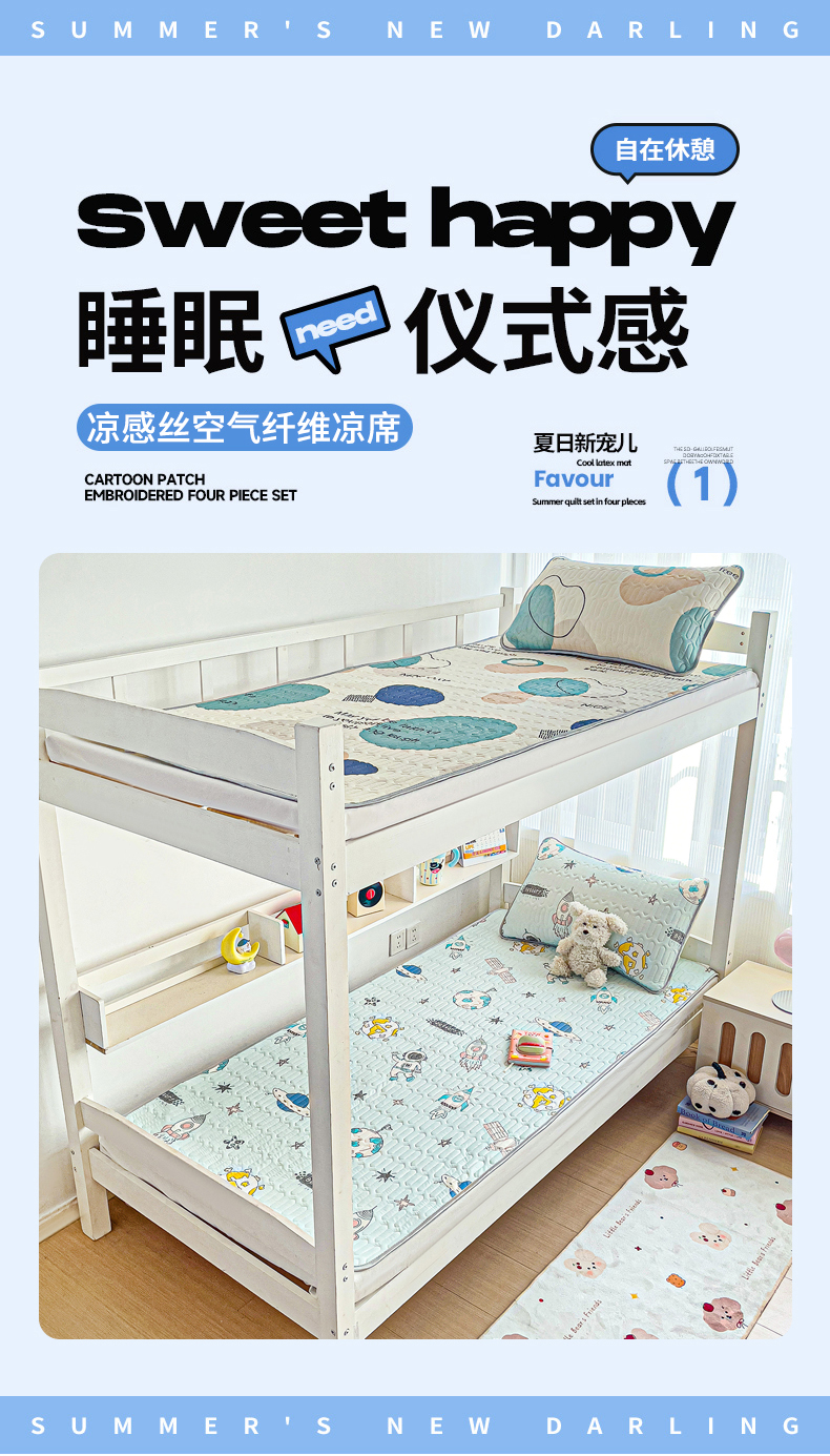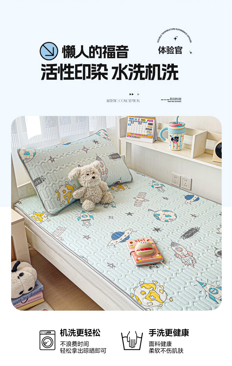 • 91家纺网 家纺一手货源 找家纺 富馨莱 2025新款A类凉感丝空气纤维凉席学生款 太空蓝