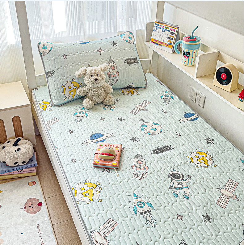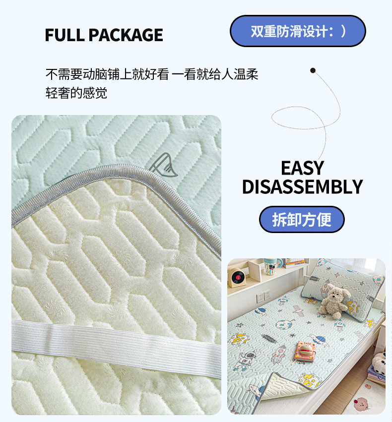 (总)富馨莱 2025新款牛奶绒夹棉床垫床盖支持一件定制,飞行太空,格子熊猫,孔雀蓝,恐龙伙伴,抹茶绿,七彩草莓,轻奢白,轻奢灰,小精灵,小柯基,樱桃兔,脏脏熊,组合图