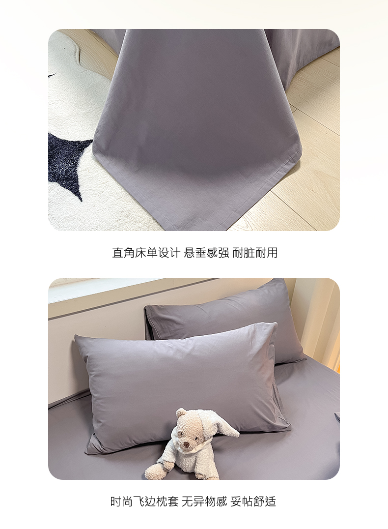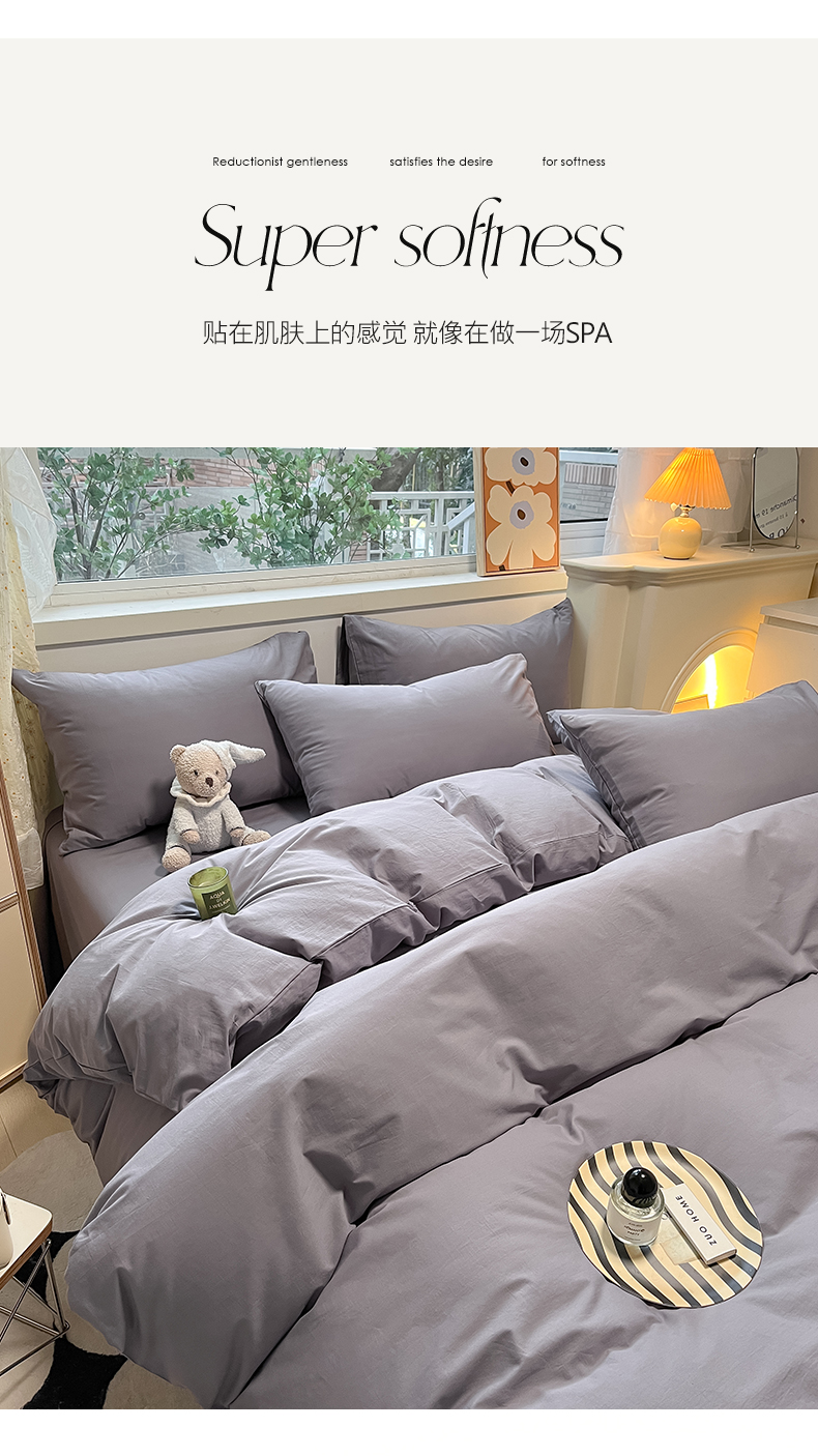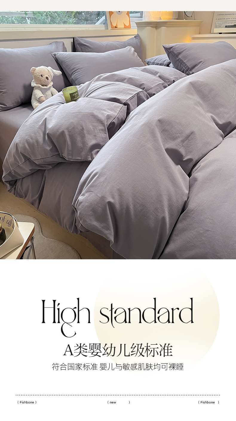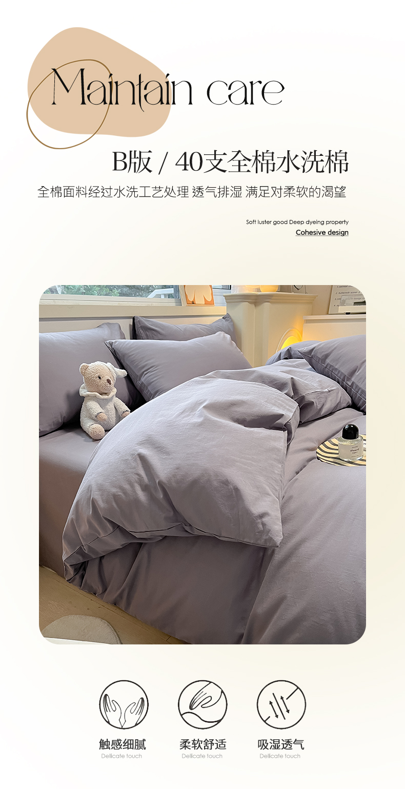 卡巴伦家纺 2025新款40支纯棉A类水洗棉四件套风格2 水晶灰