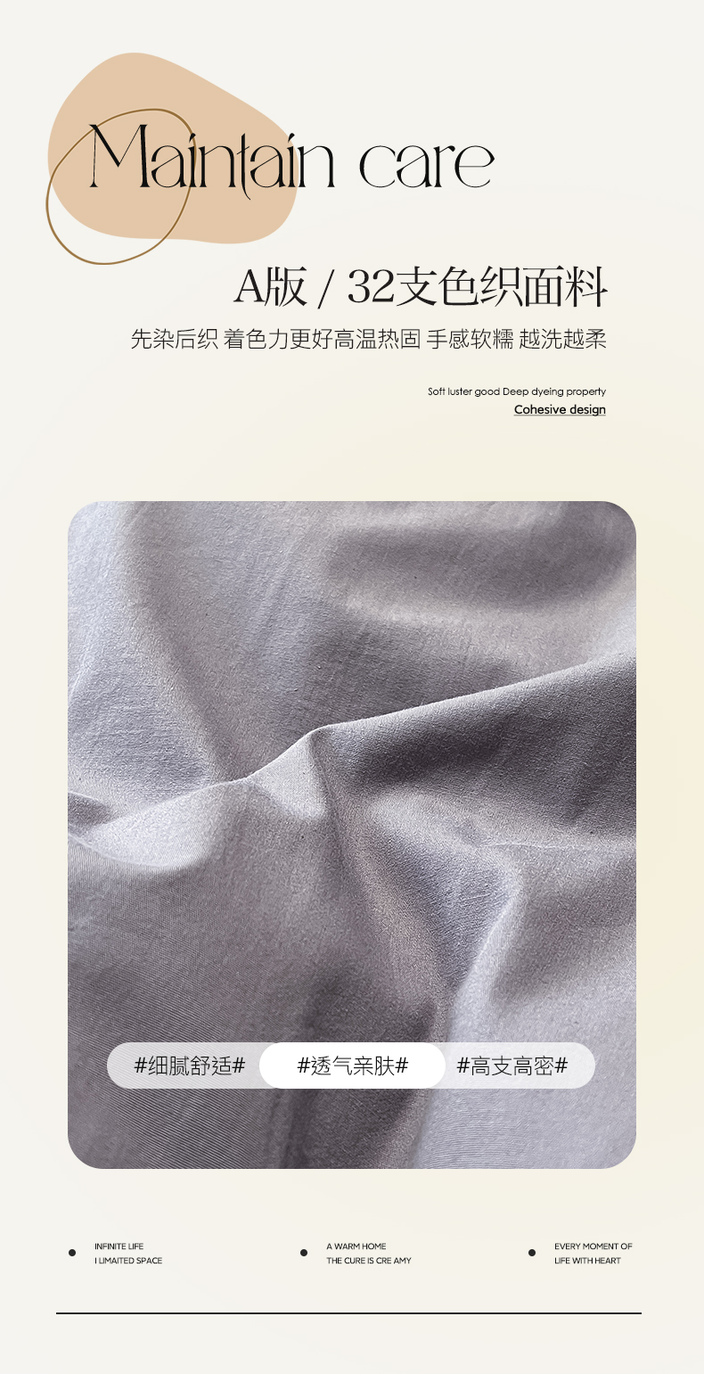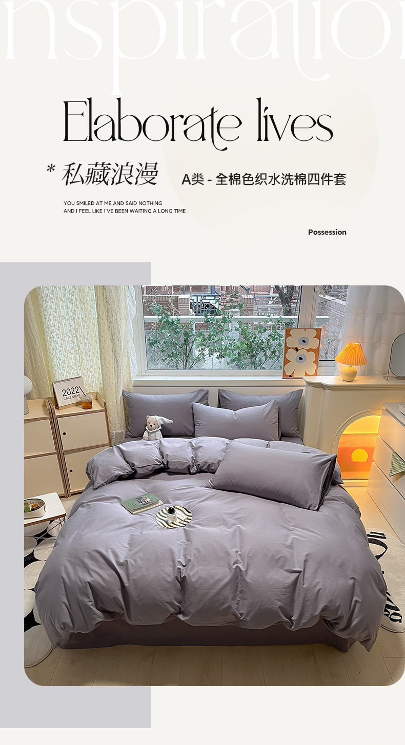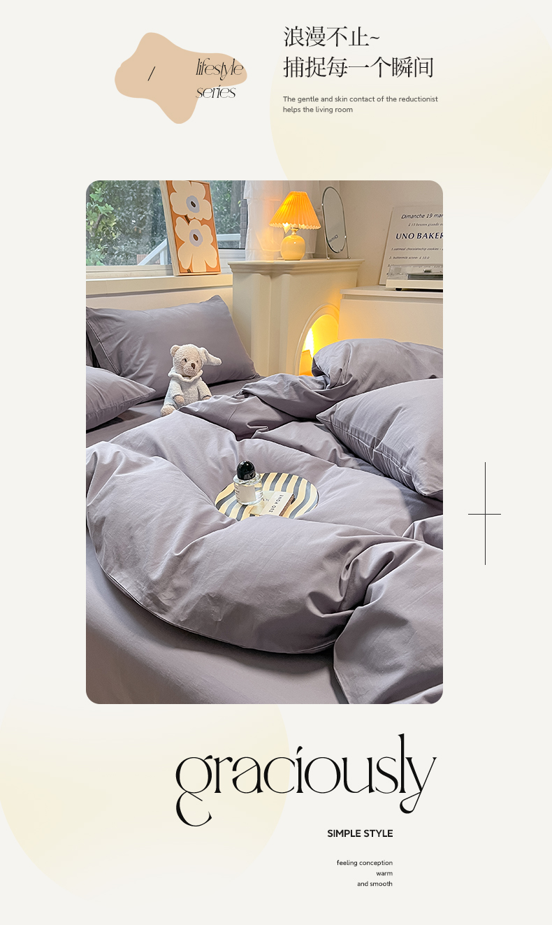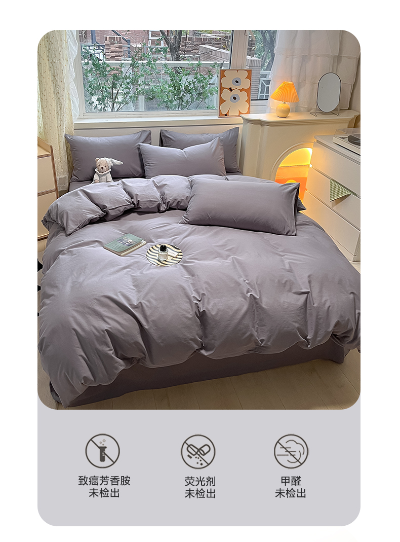 卡巴伦家纺 2025新款40支纯棉A类水洗棉四件套风格2 水晶灰