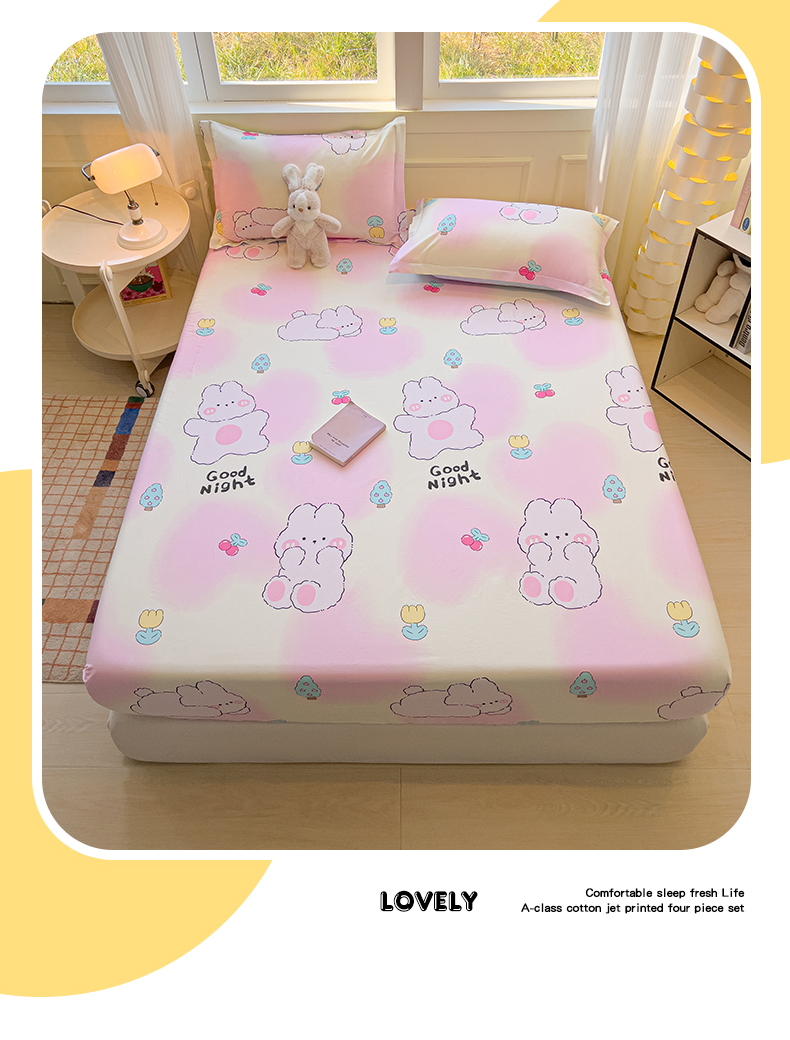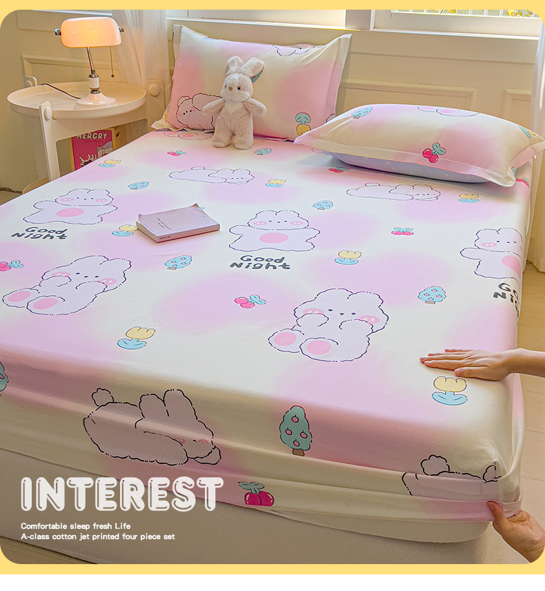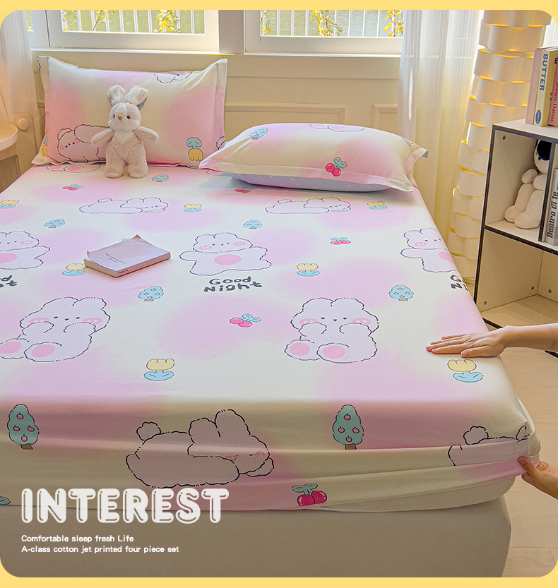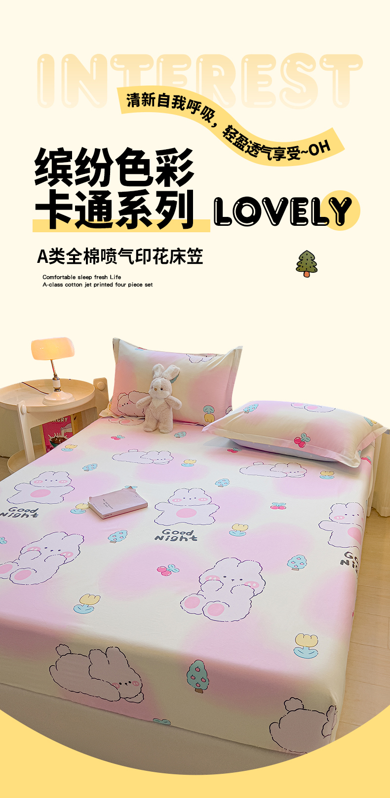 拾物记 2025新款A类无荧光全喷气全棉12868单床笠 可欣兔