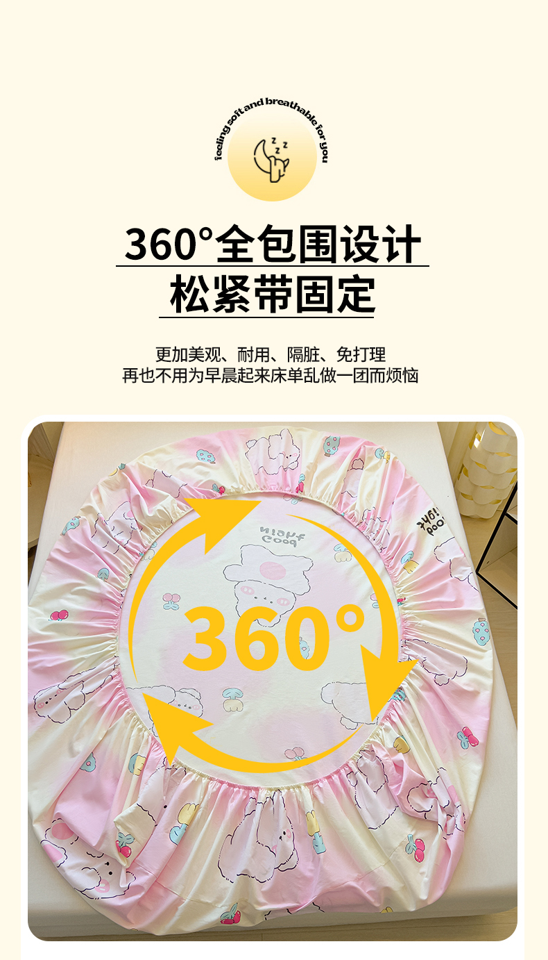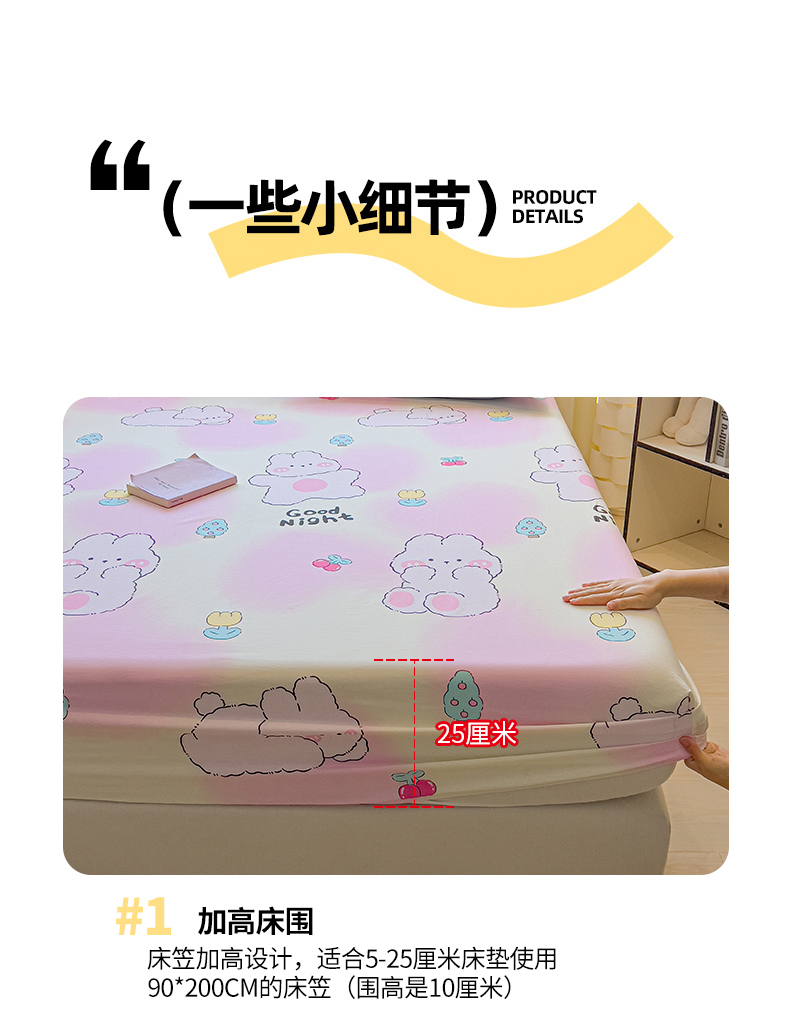 • 91家纺网 家纺一手货源 找家纺 拾物记 2025新款A类无荧光全喷气全棉12868单床笠 可欣兔